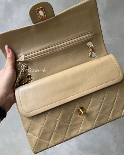 Chanel Vintage Medium Light Beige Classic Double Flap in Lambskin Leather and 24K Gold Hardware