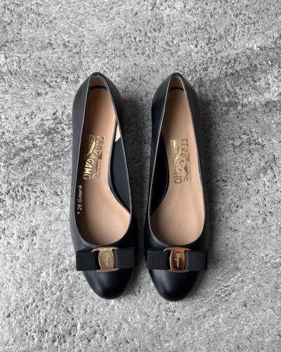 Ferragamo 38UE Black Bow Ballerina Pumps