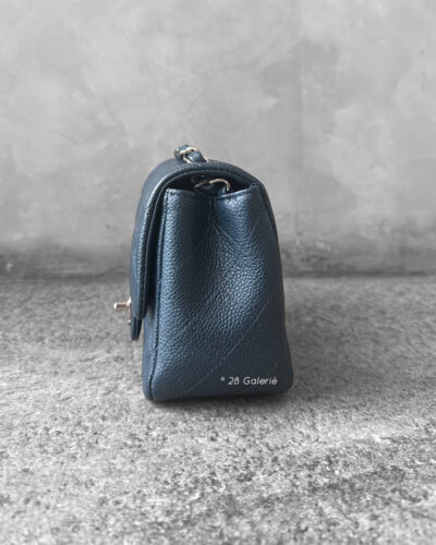 Chanel Pearly Blue Mini Square Flap in Caviar Leather and Silver Hardware