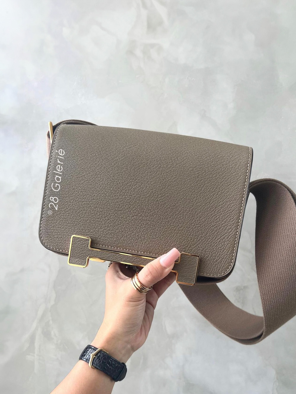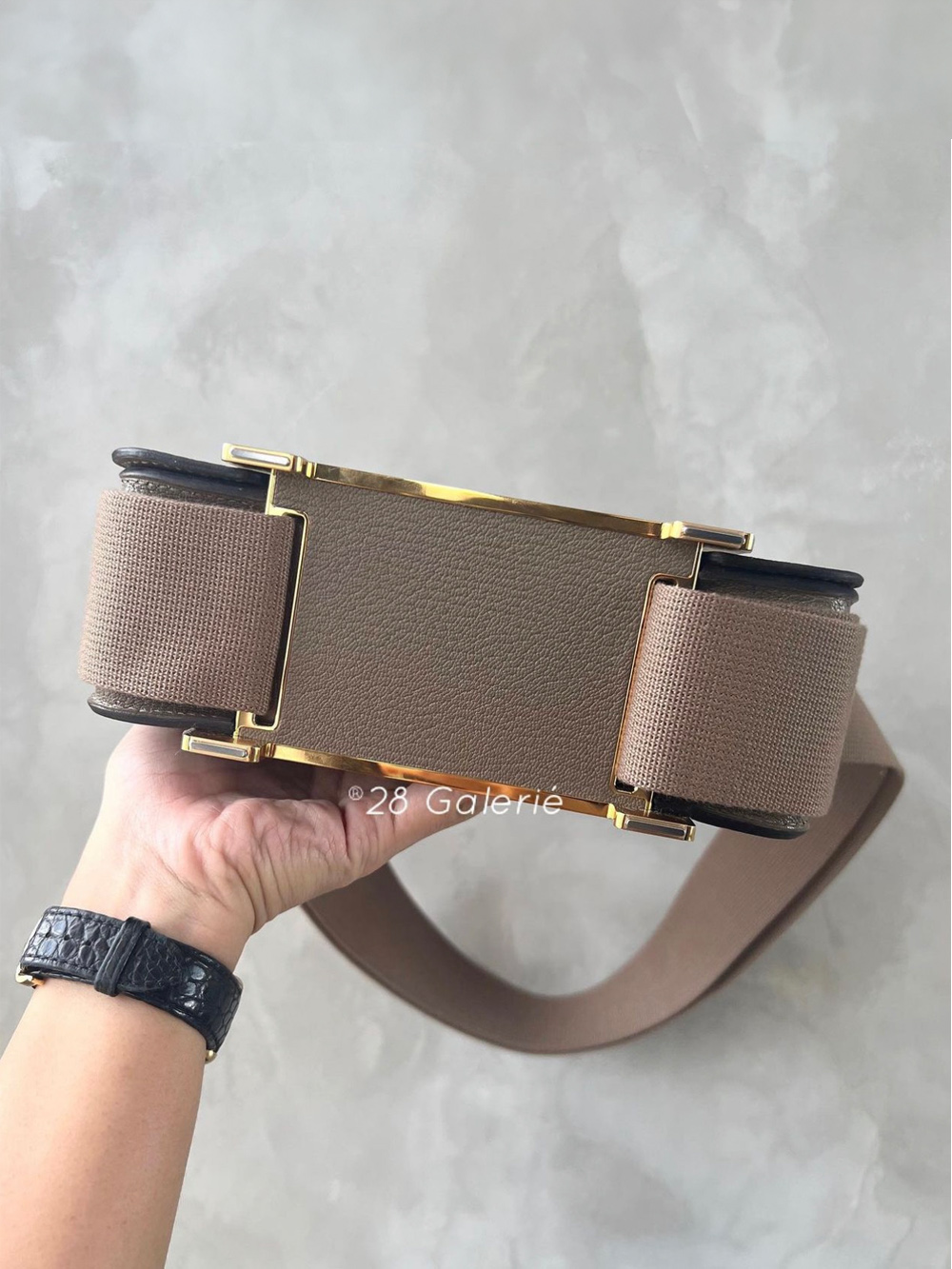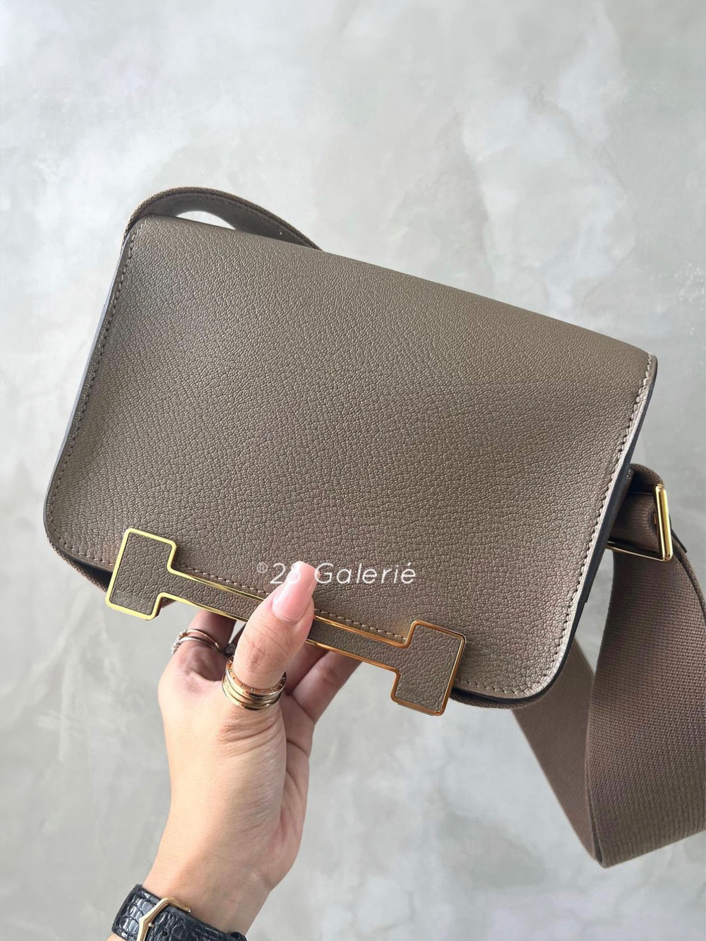 Hermes Etoupe Geta Bag in Chevre Mysore and Gold Hardware