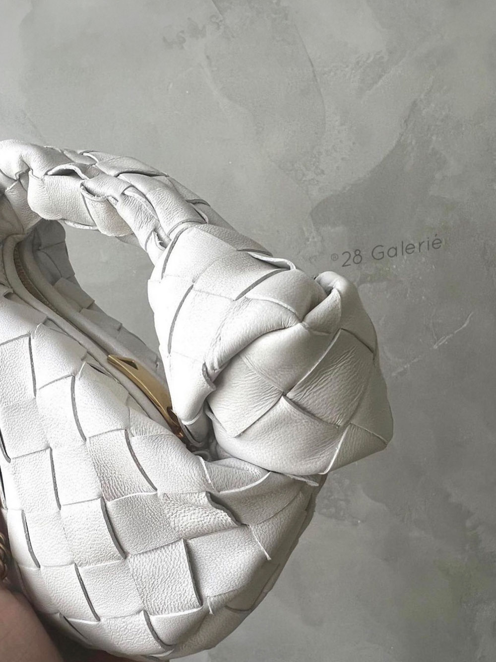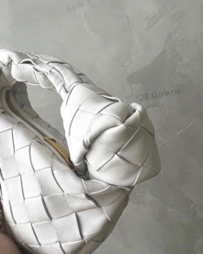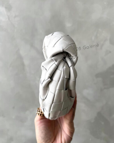 Bottega Veneta White Candy( Micro)Jodie in Calfskin Leather and Gold Hardware