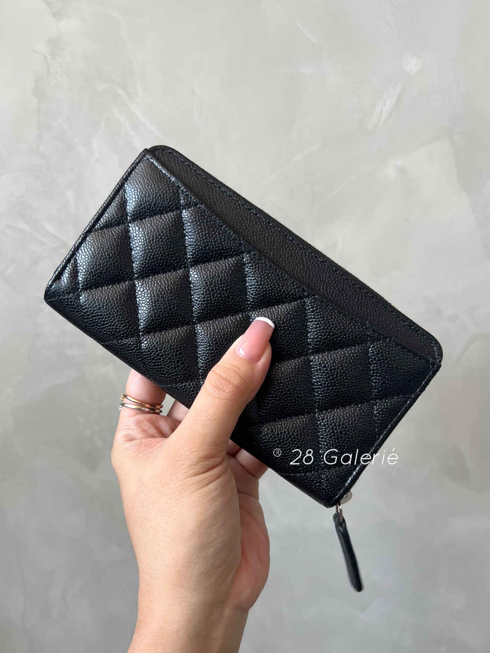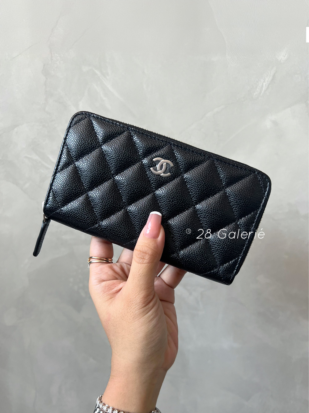 Chanel 24P CC Zip Around Medium Size Wallet in Caviar Leather and Silver Hardware