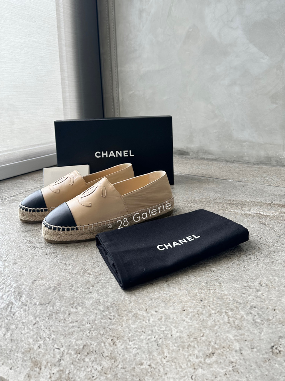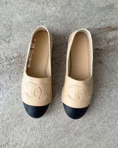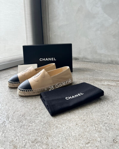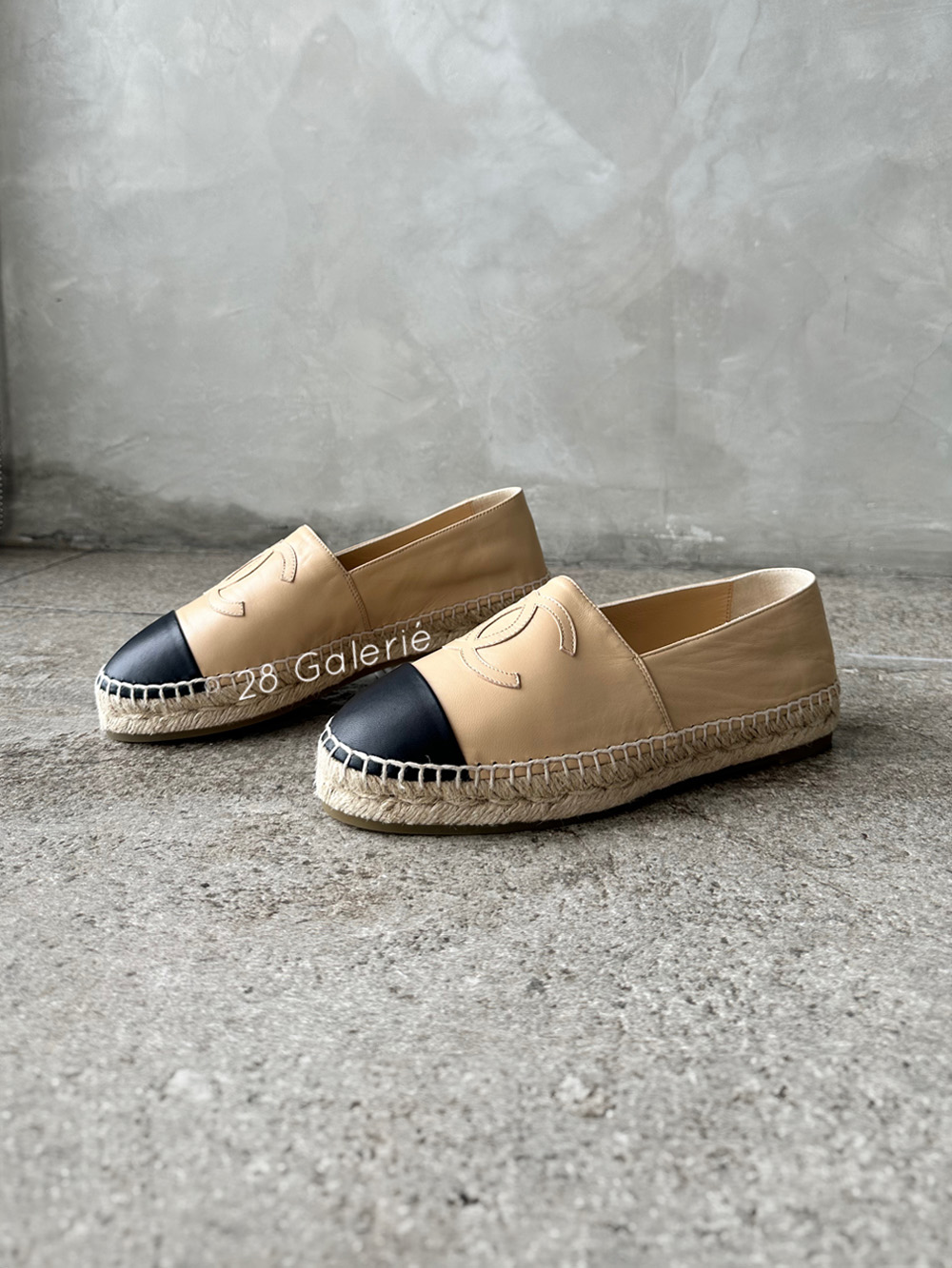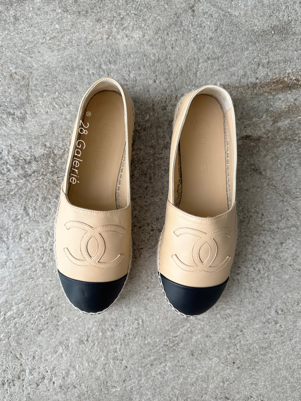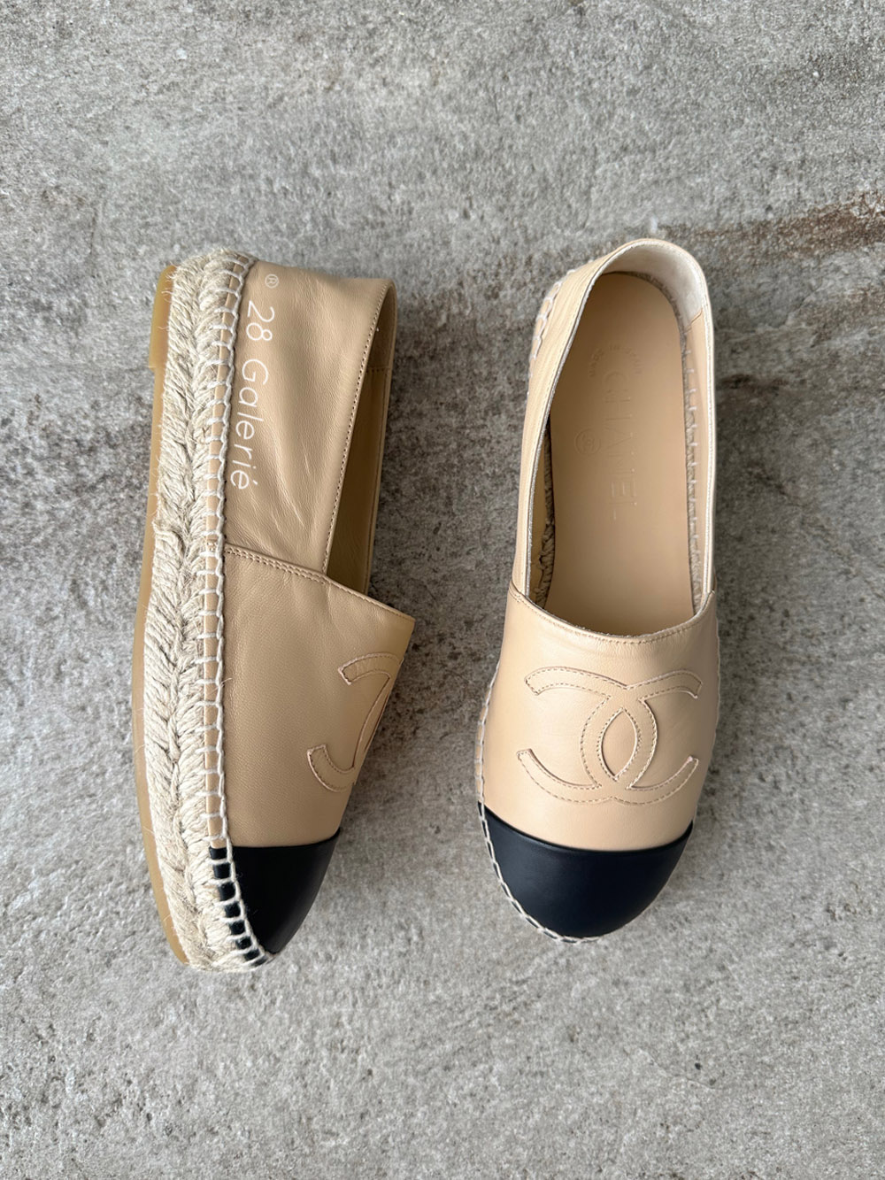 Chanel Beige and Black Espadrilles in Lambskin Leather