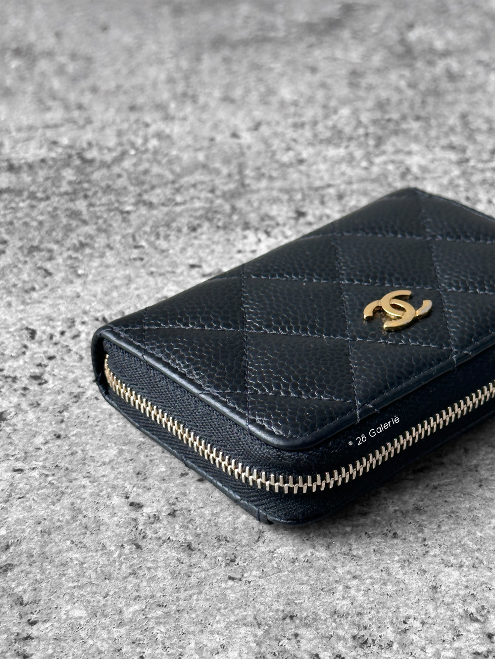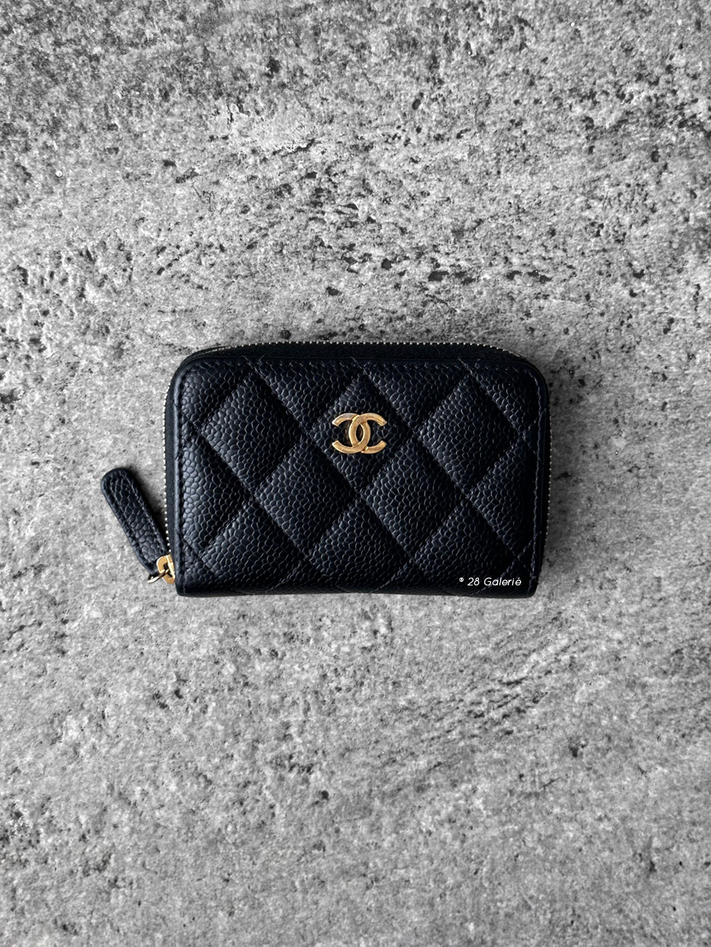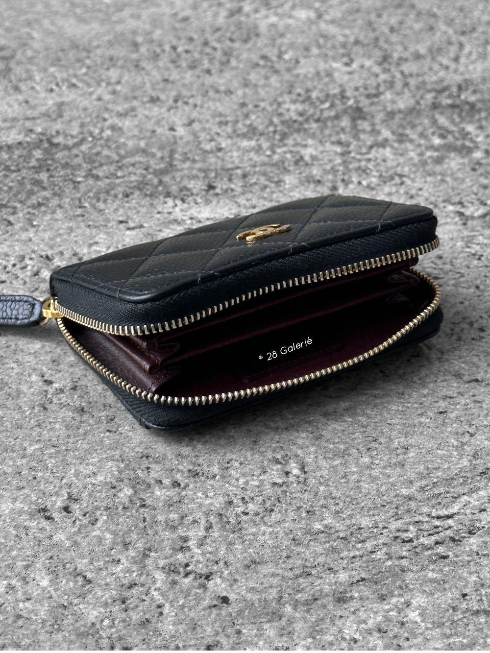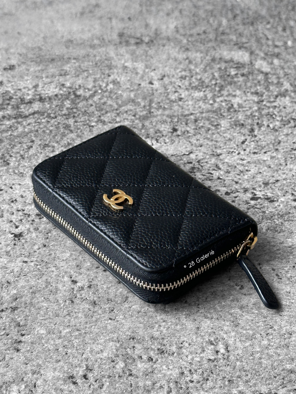 Chanel Black Zippy Card Wallet in Quilted Caviar Leather and Gold Hardware