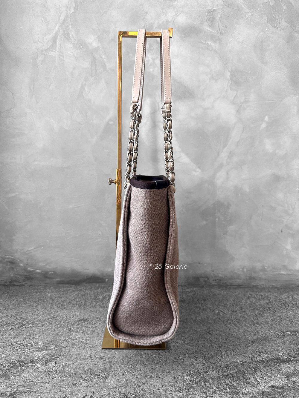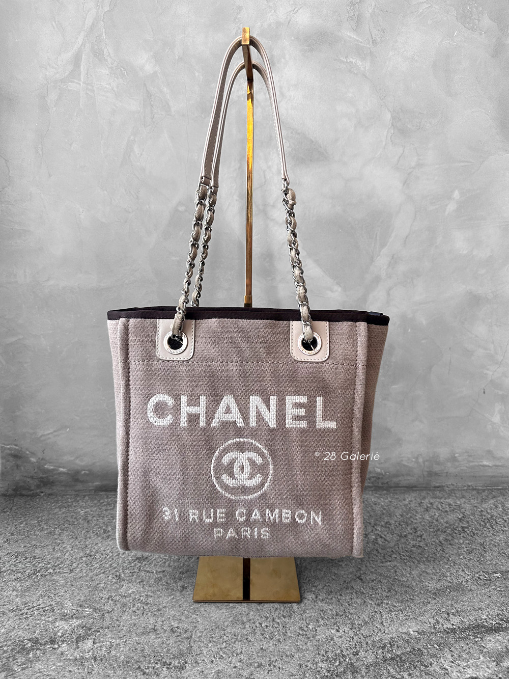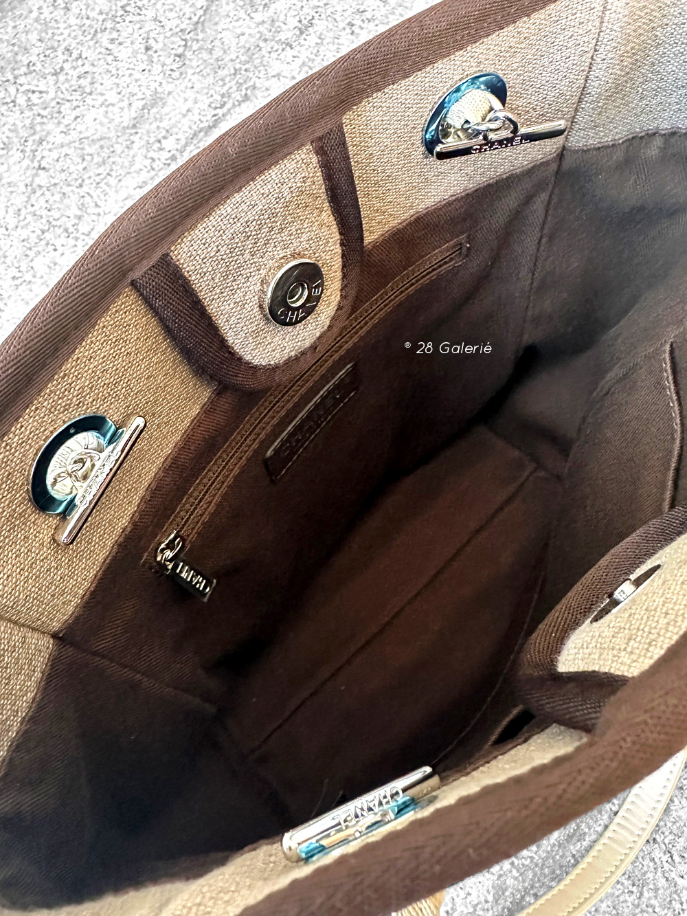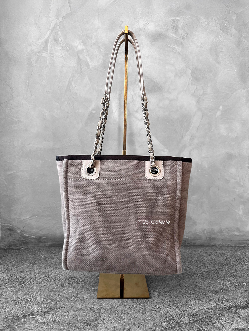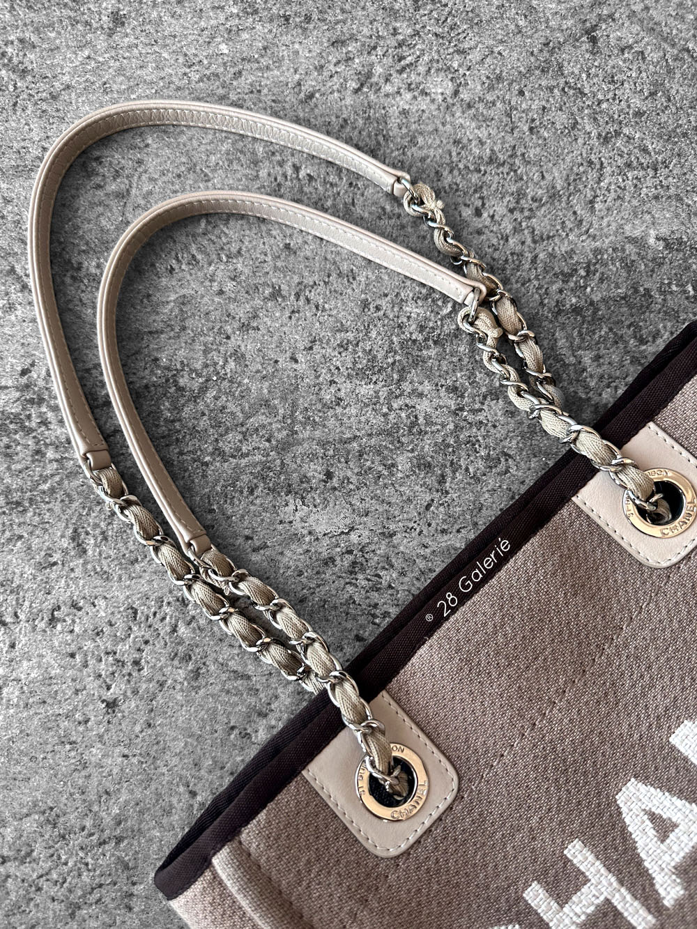 Chanel Brown/Beige Deauville PM Canvas Leather Tote Bag in Silver Hardware