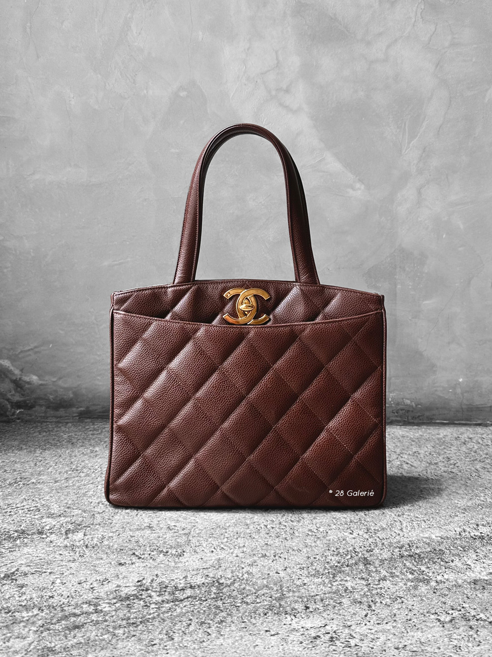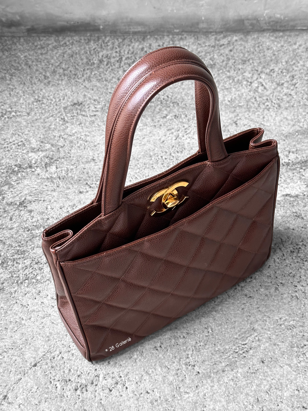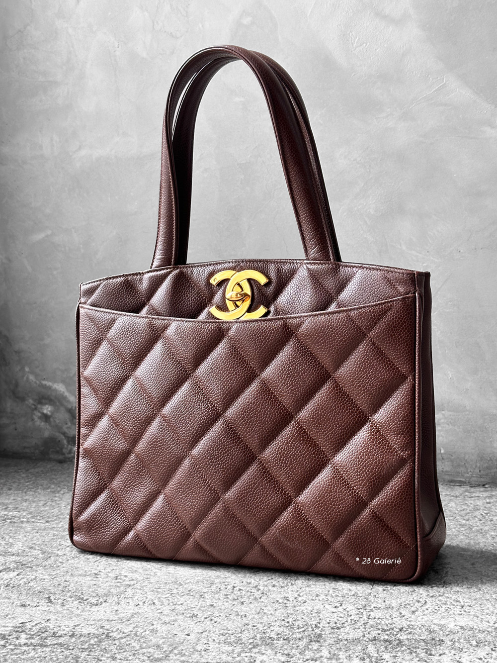 Chanel Brown Vintage Chanel Turnlock totebag in Caviar Leather and Gold Hardware