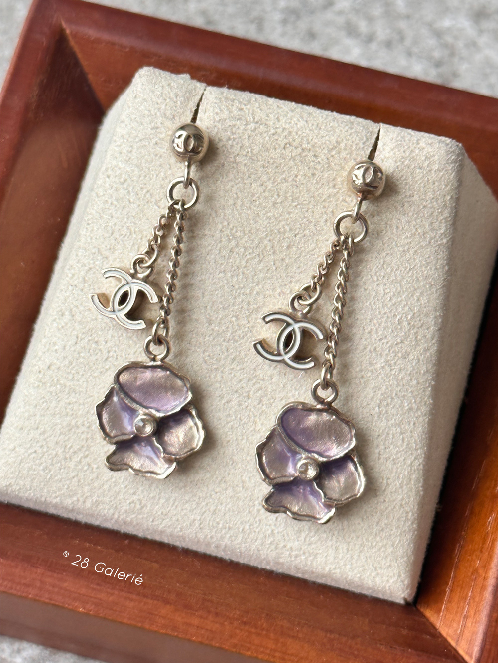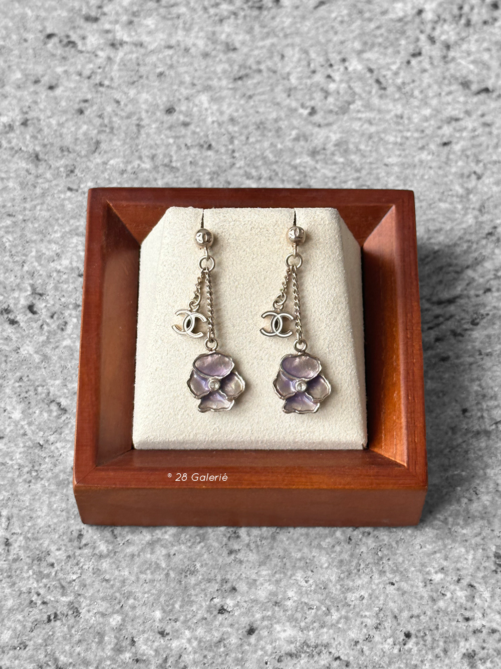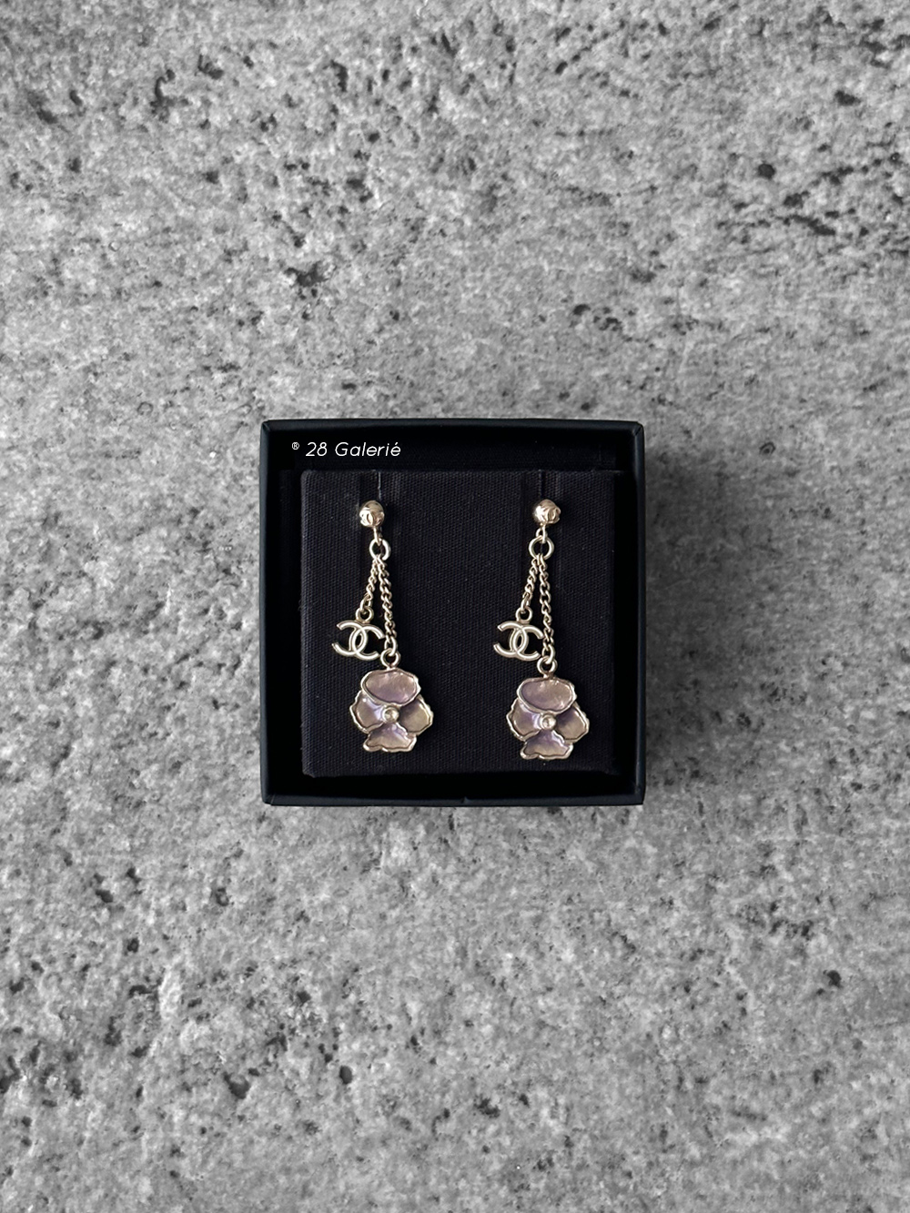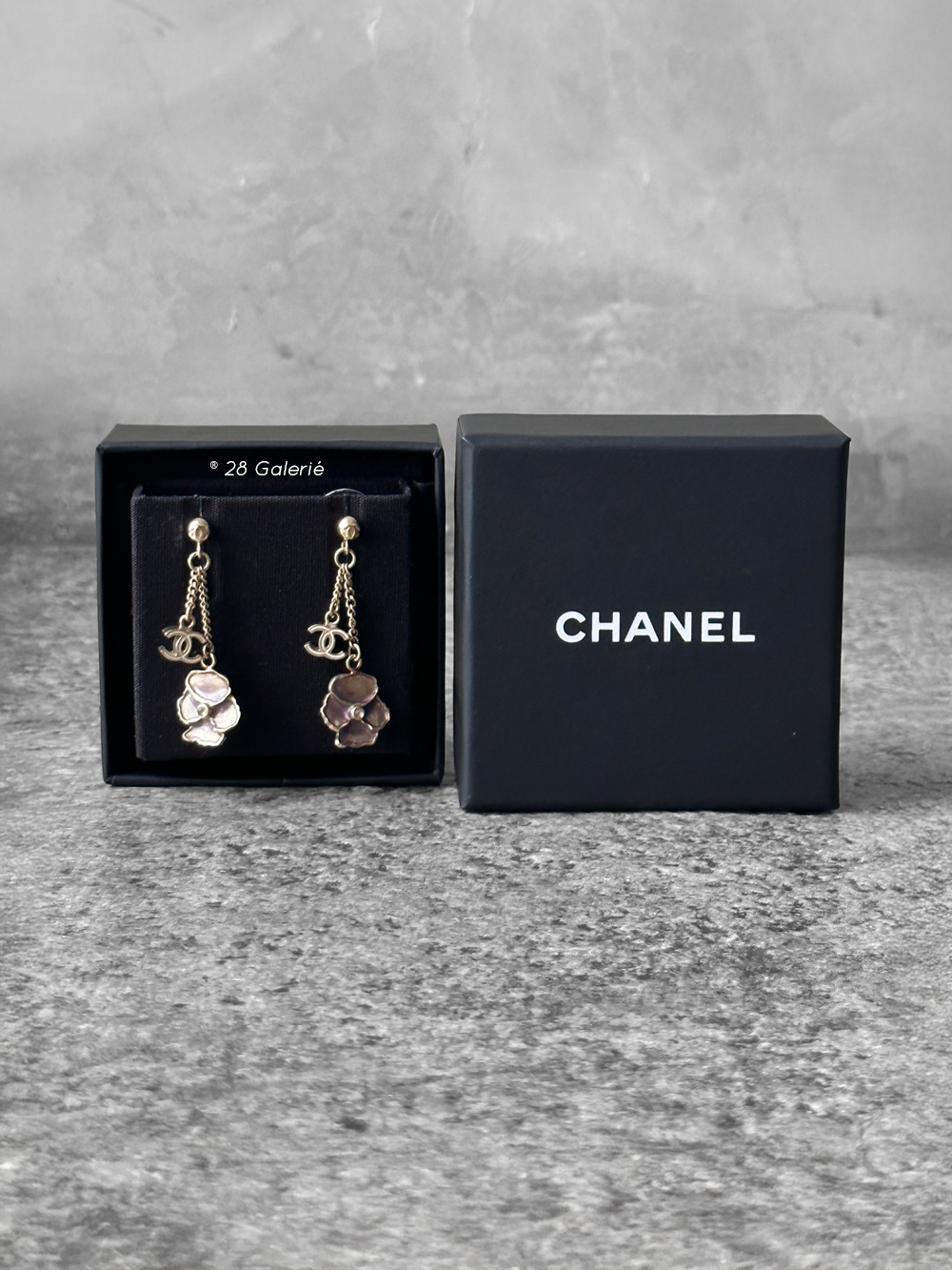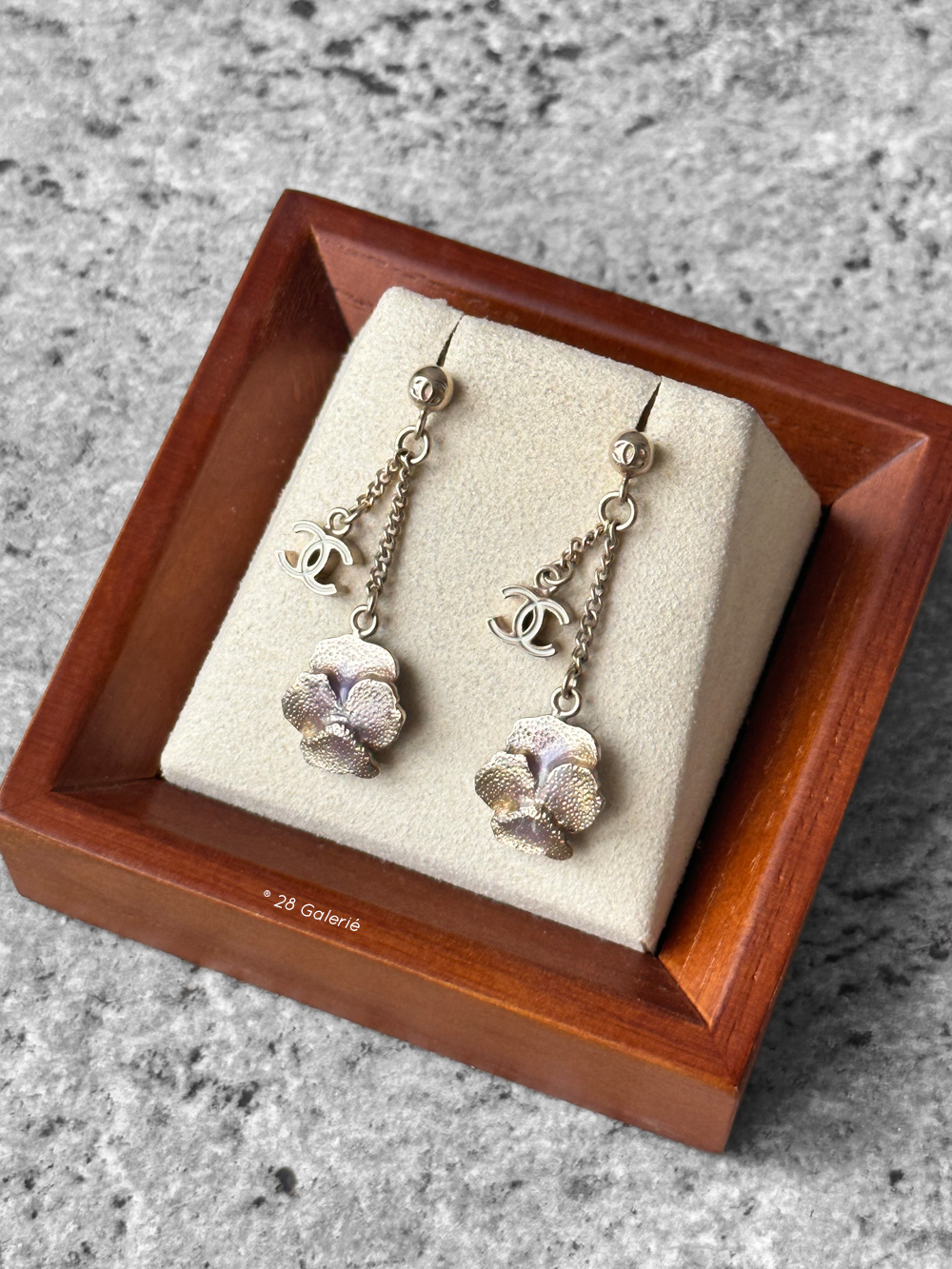 Chanel Camelia Shell Drop Earrings and Silver hardware