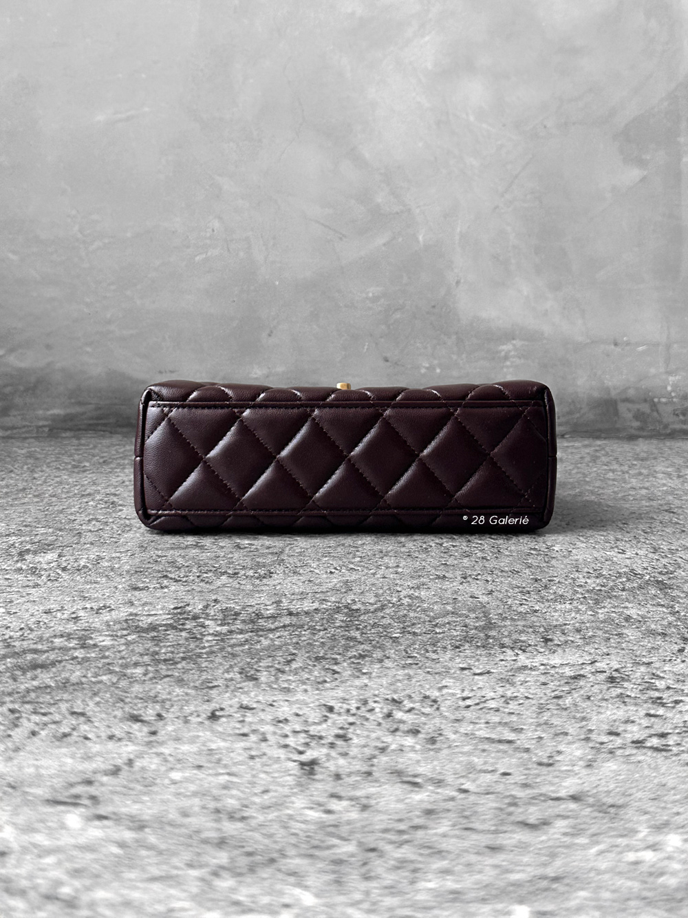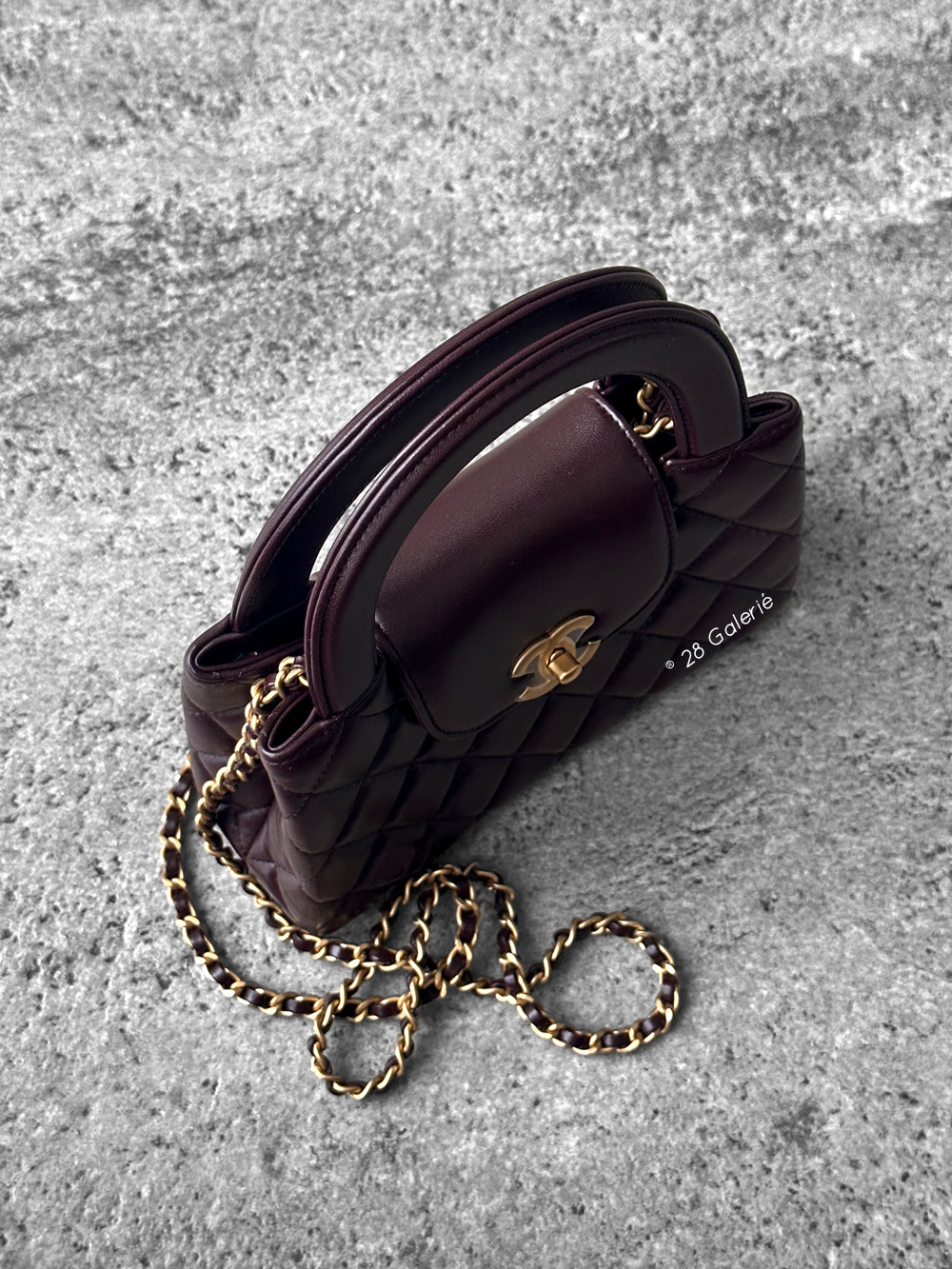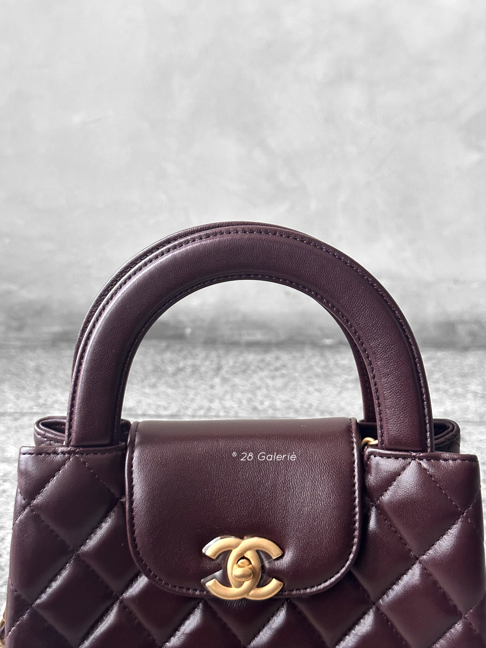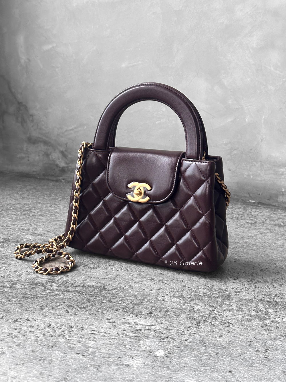 Chanel Dark Brown Mini Kelly Shopping tote bag in Shiny Calfskin Leather and Gold Hardware