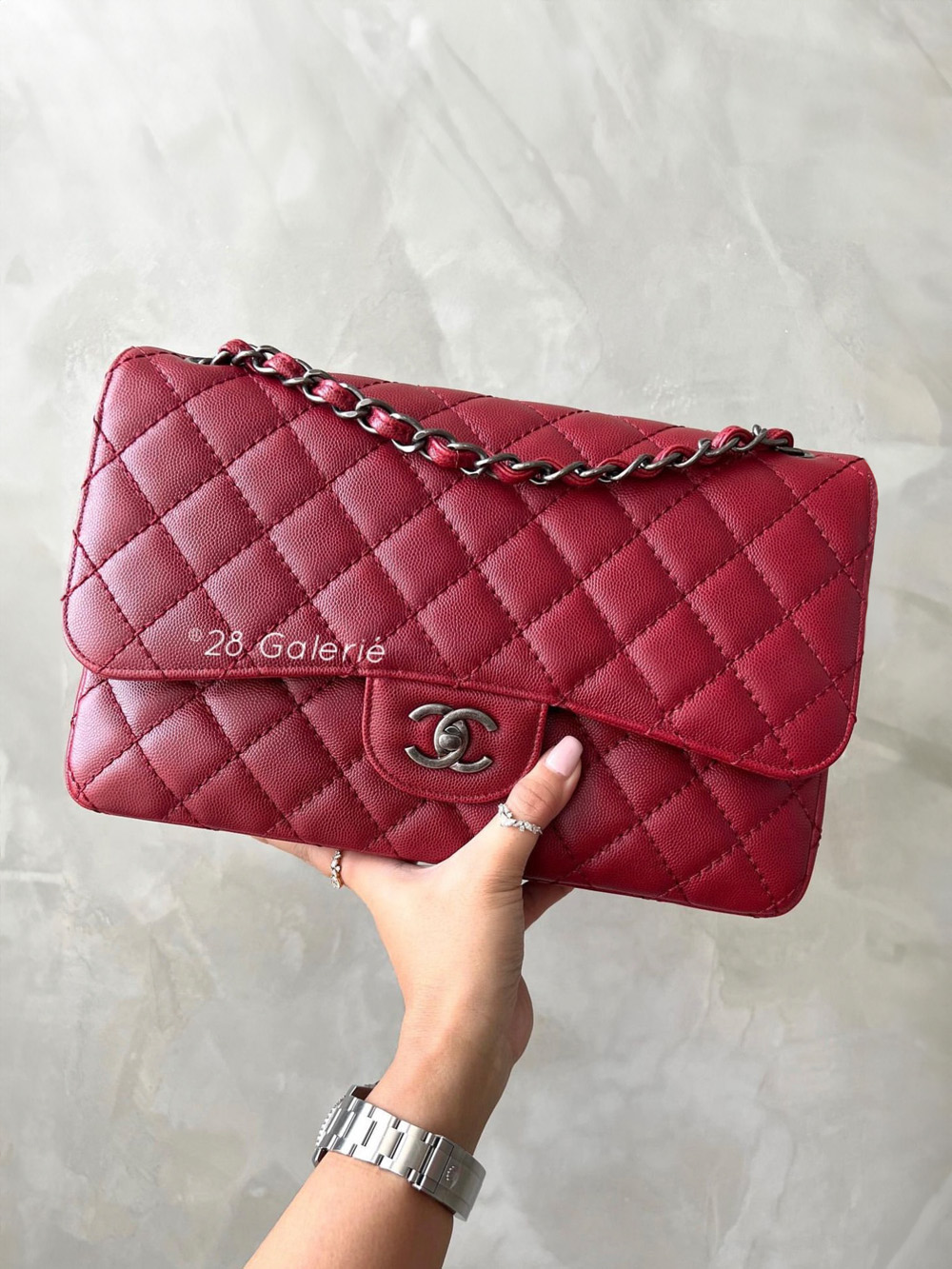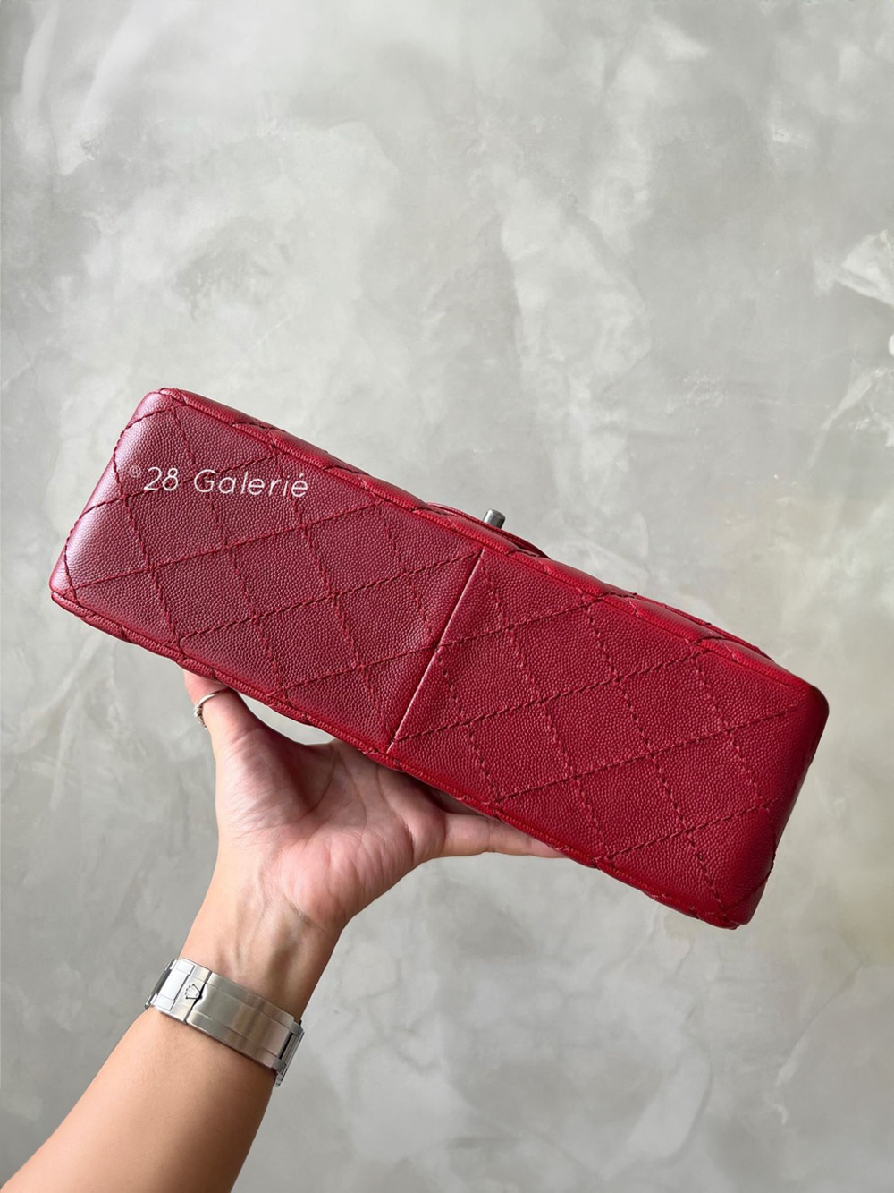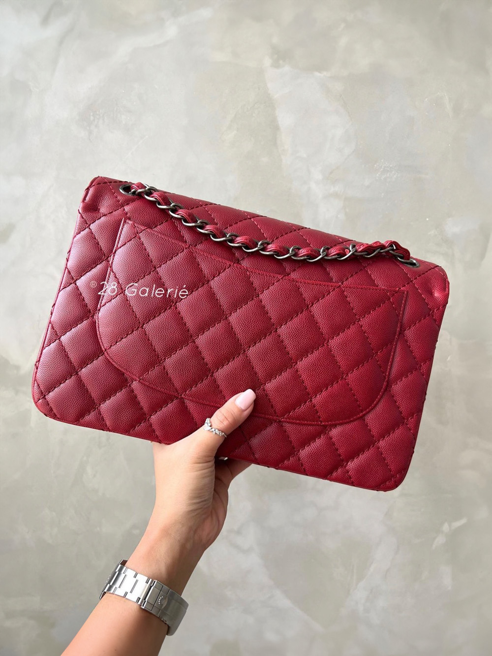 Chanel Jumbo Deep Red Classic Double Flap in Caviar Leather and Aged Gold Hardware Series 28