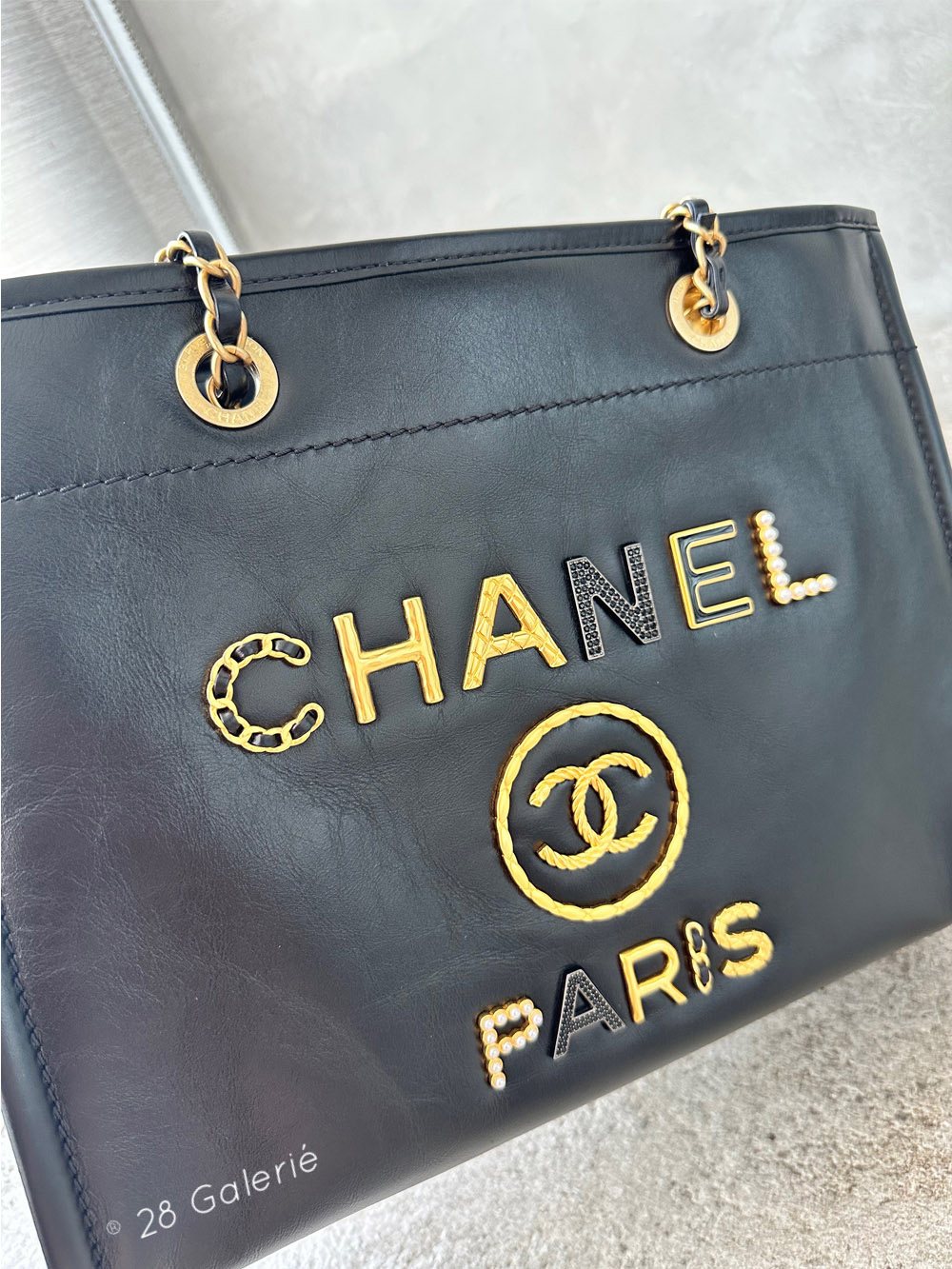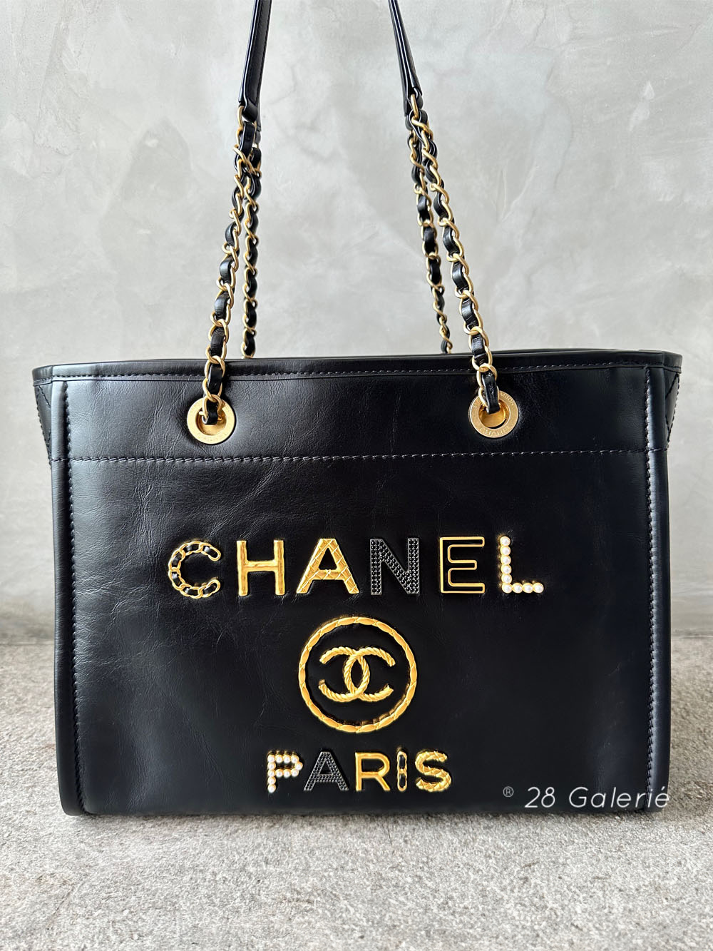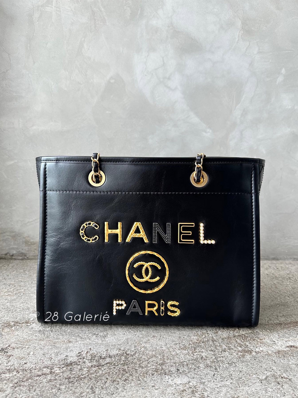 This Chanel tote is a rare piece being the very first version of Deauville to be released in leather material with imitation pearls and black strass material. It is very roomy and can literally fit all of your daily essentials, from your laptop to cardigans, vanity kits, documents, camera etc. This is a very stunning and versatile bag to own and is definitely one of few Chanel tote designs that you can totally use daily and get all your money’s worth!