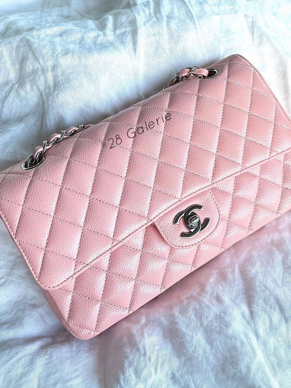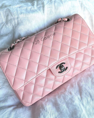 Chanel Sakura Medium Classic Double Flap in Caviar Leather and Silver Hardware Series 9