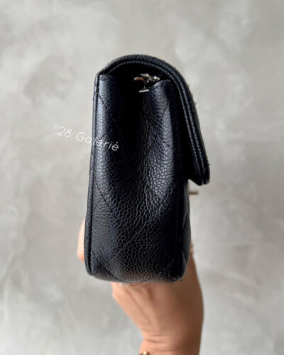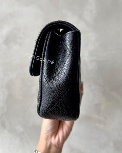 Chanel Vintage Black Eastwest Flap in Caviar Leather and Silver Hardware