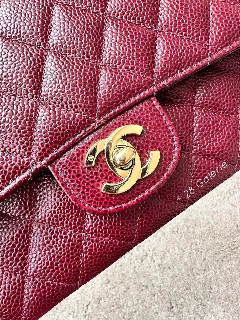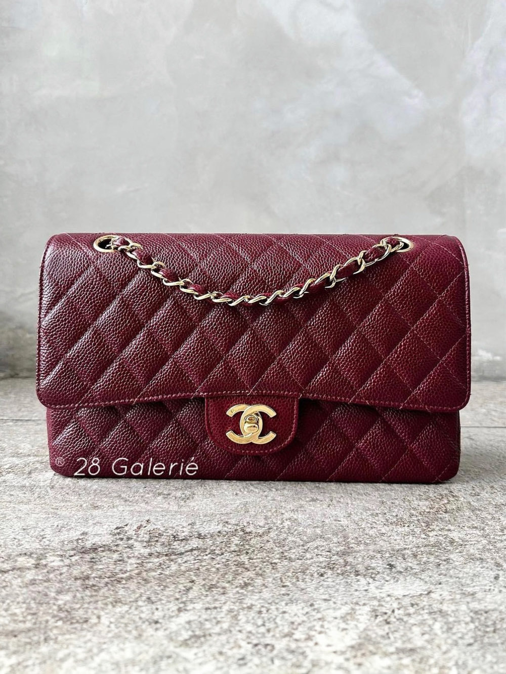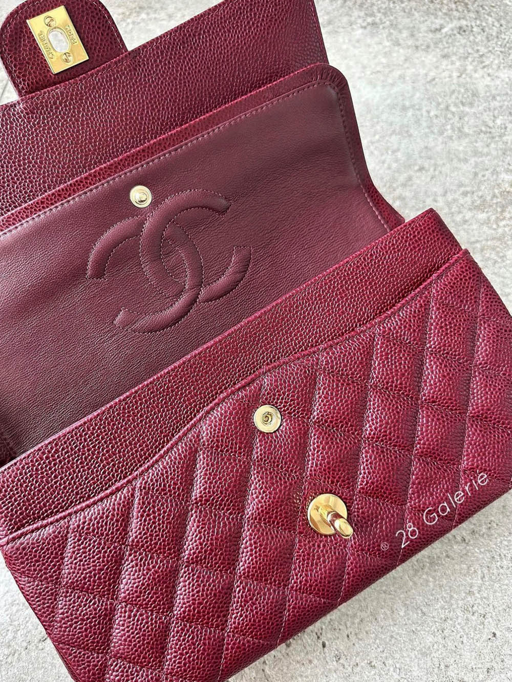 Chanel Vintage Medium Burgundy Flap in Caviar Leather and 24K Gold Hardware Series 7