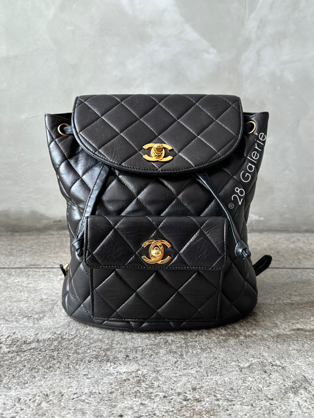 Chanel Vintage Small Black Duma Backpack in Lambskin Leather and 24k Gold Hardware