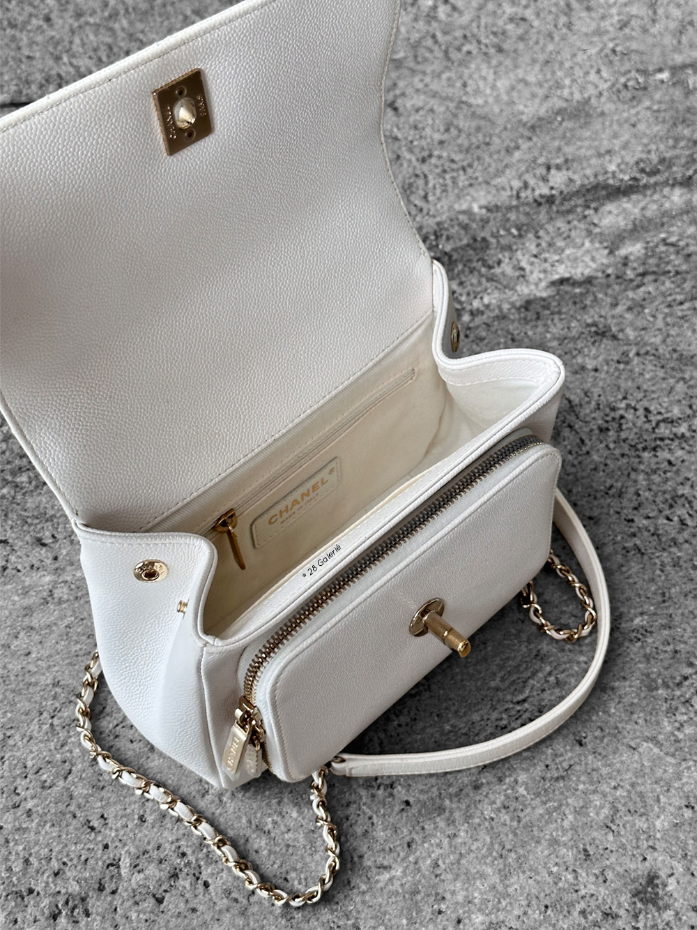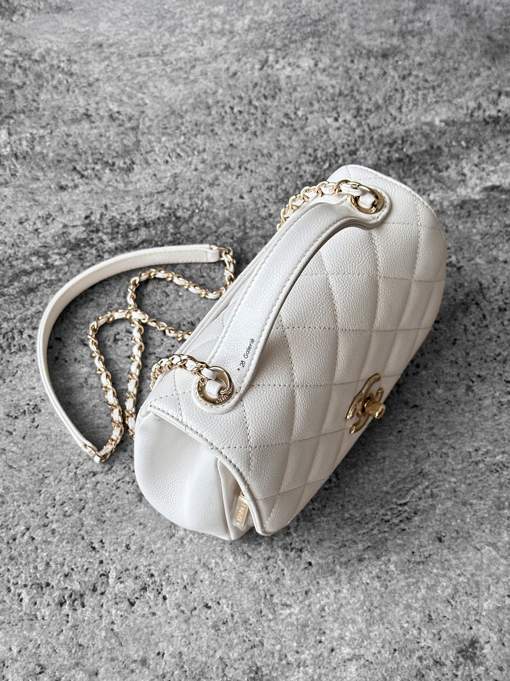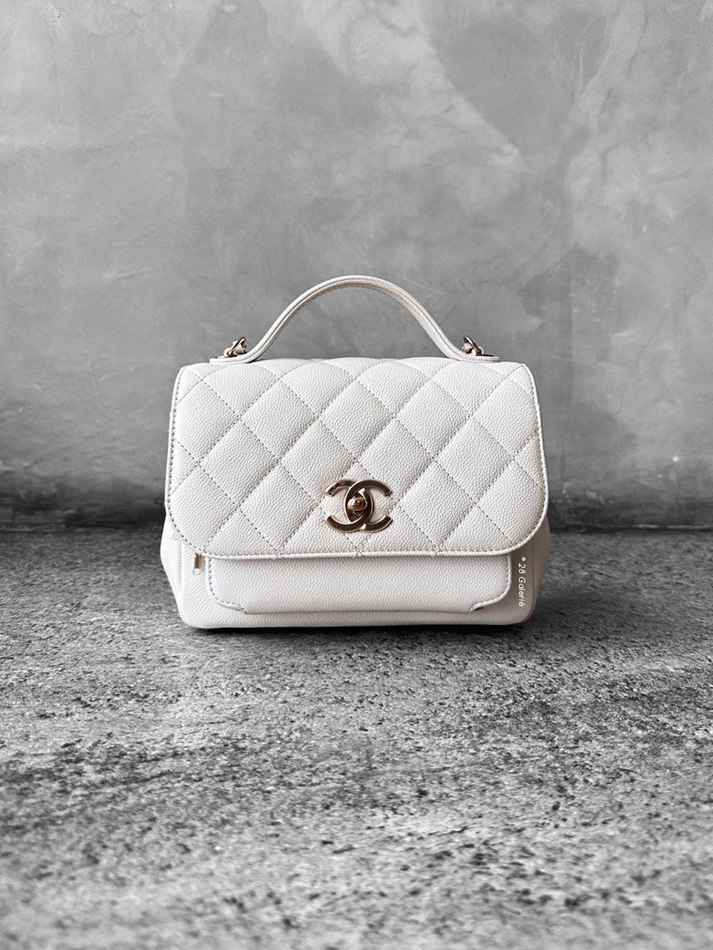 Chanel White Business Affinity Flap Bag in Caviar Leather and Gold Hardware