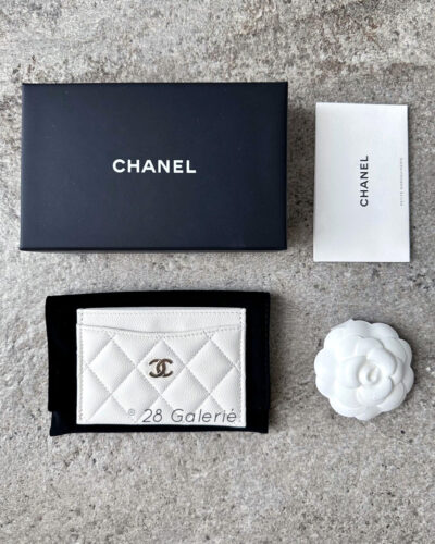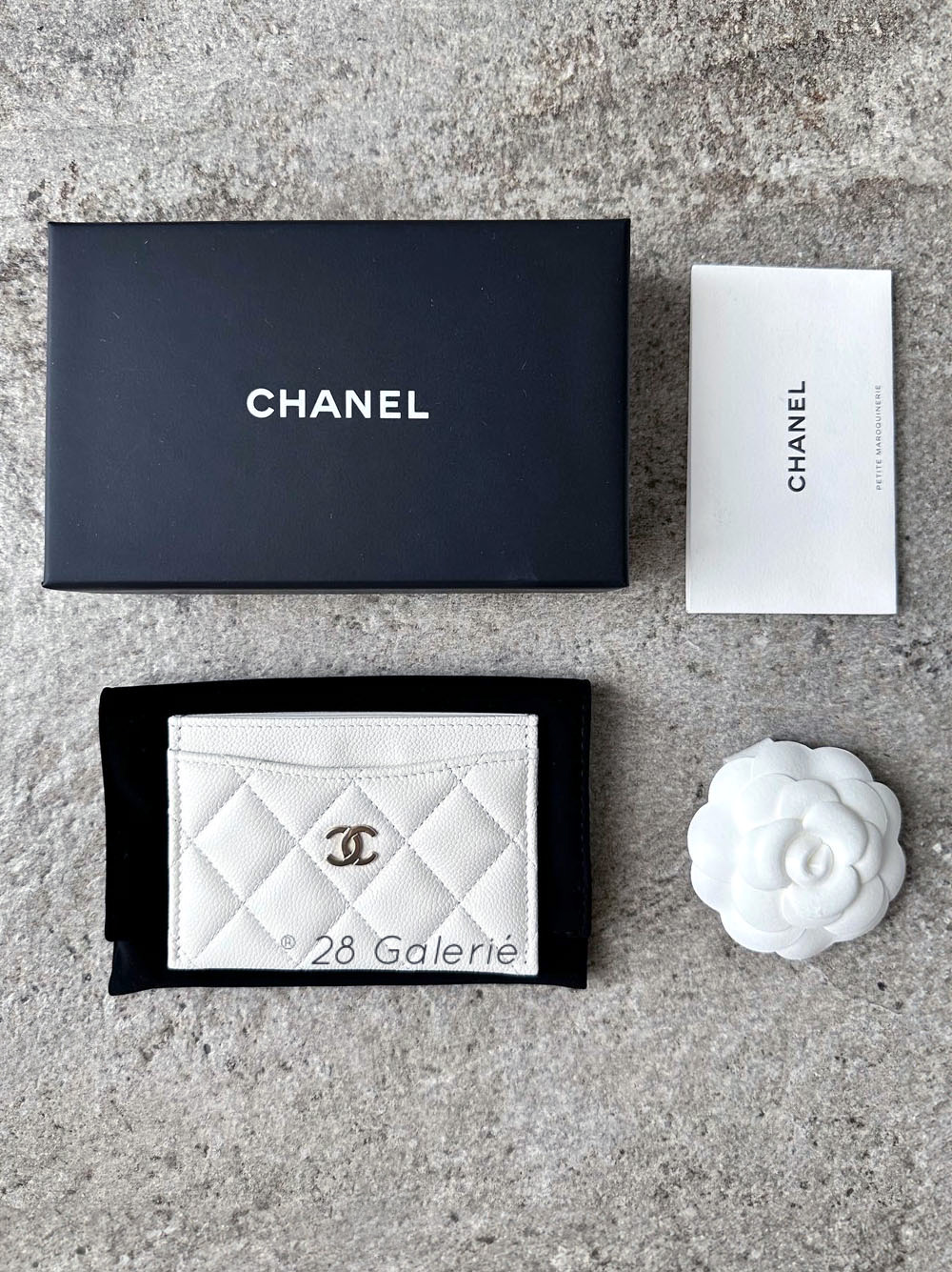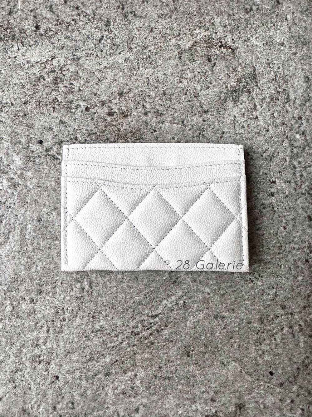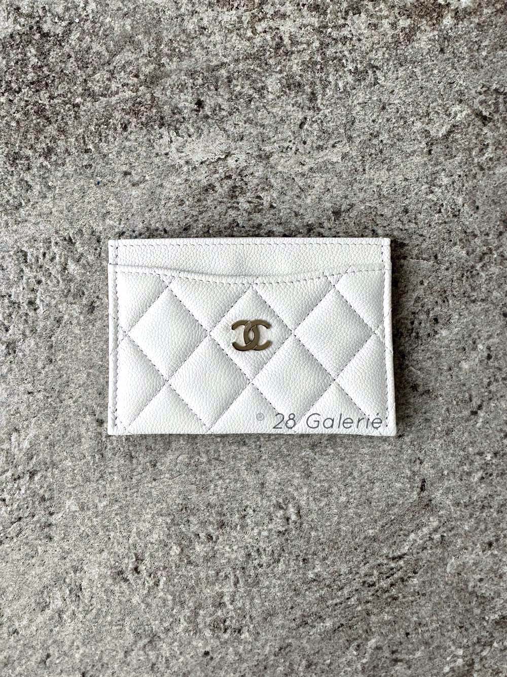 Chanel White Flat Cardholder in Caviar Leather and Gold Hardware