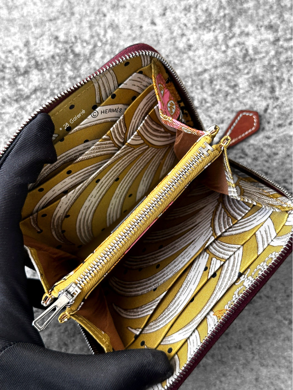 Hermes Bordeaux Silk’In Compact Wallet in Epsom Leather and Palladium Hardware