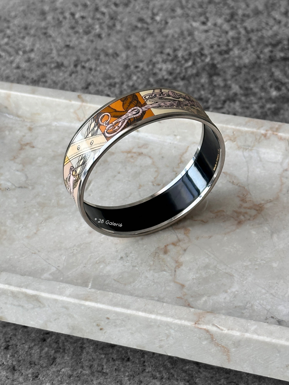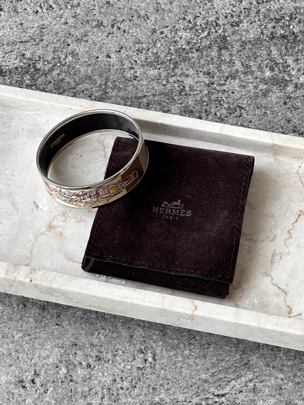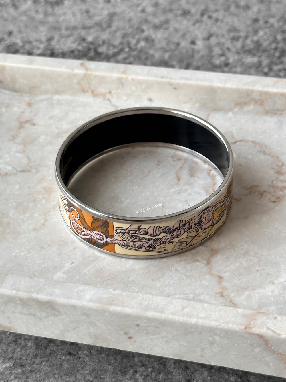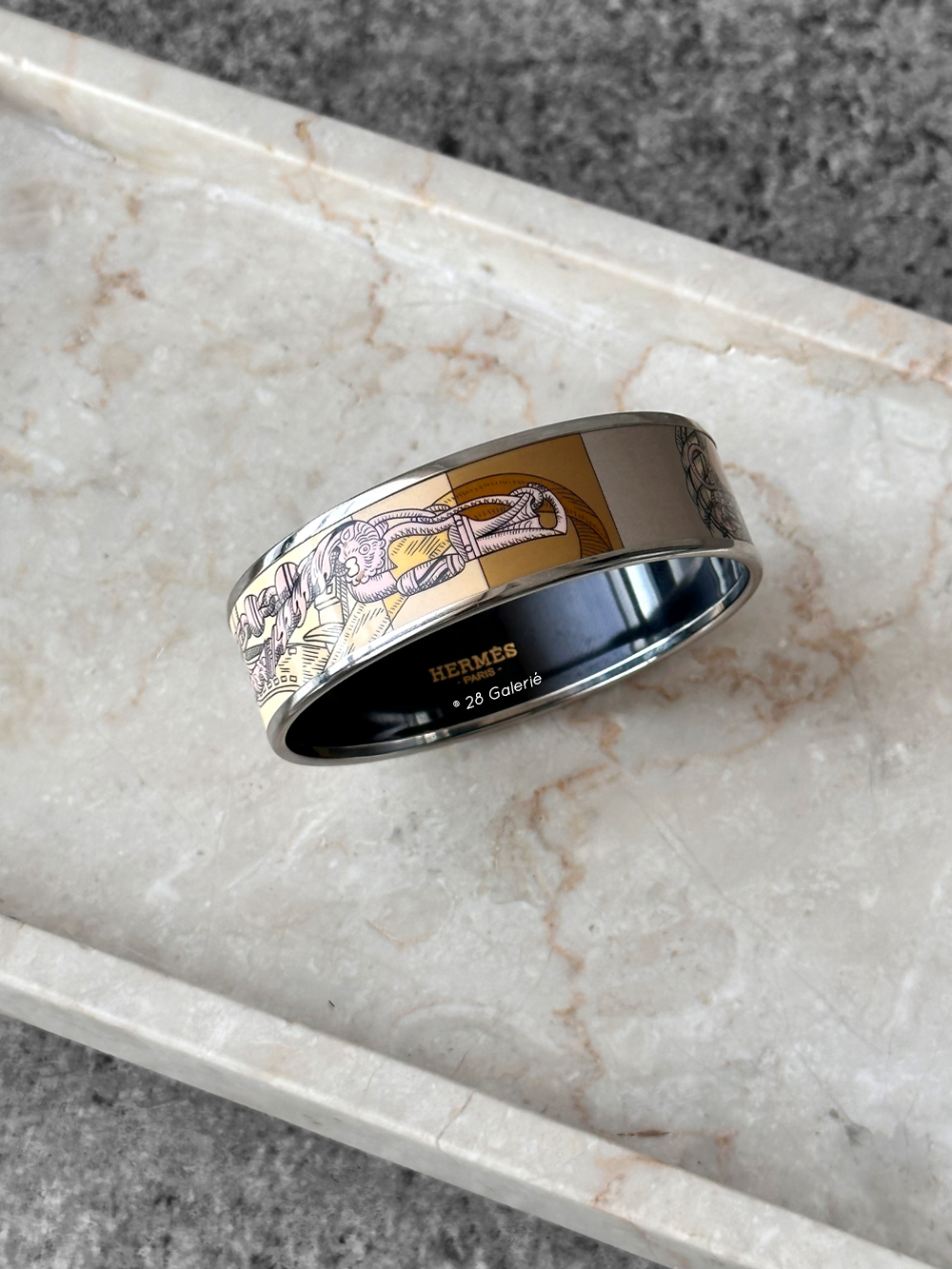 Hermes Della Cavalleria Printed Enamel Bracelet Bangle Palladium hardware