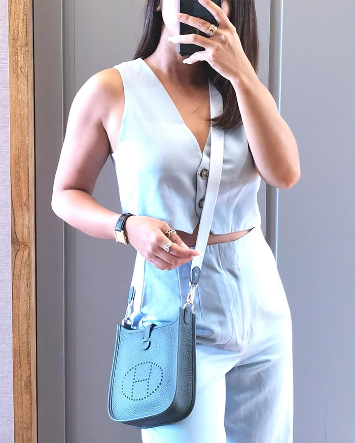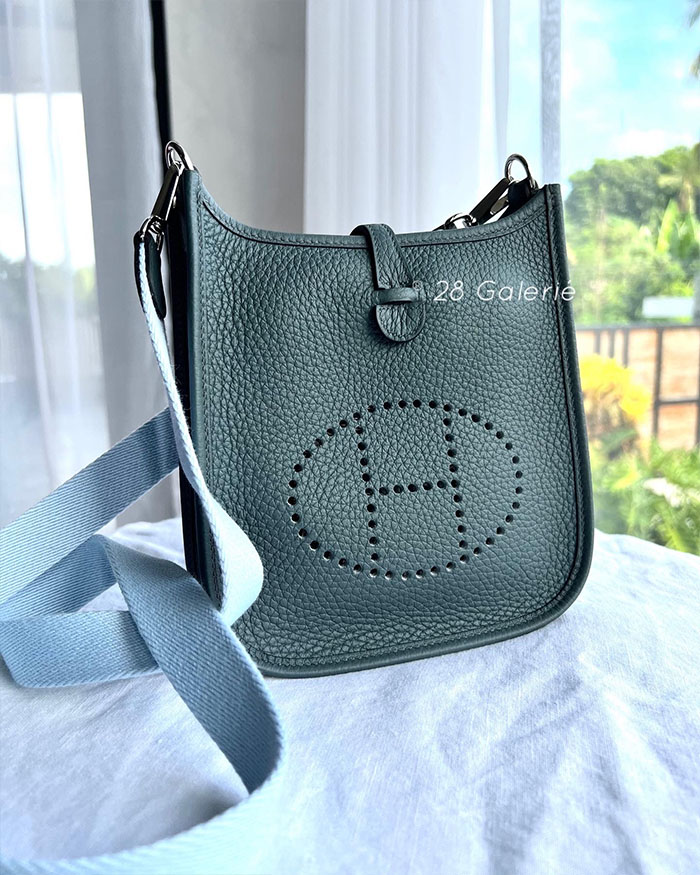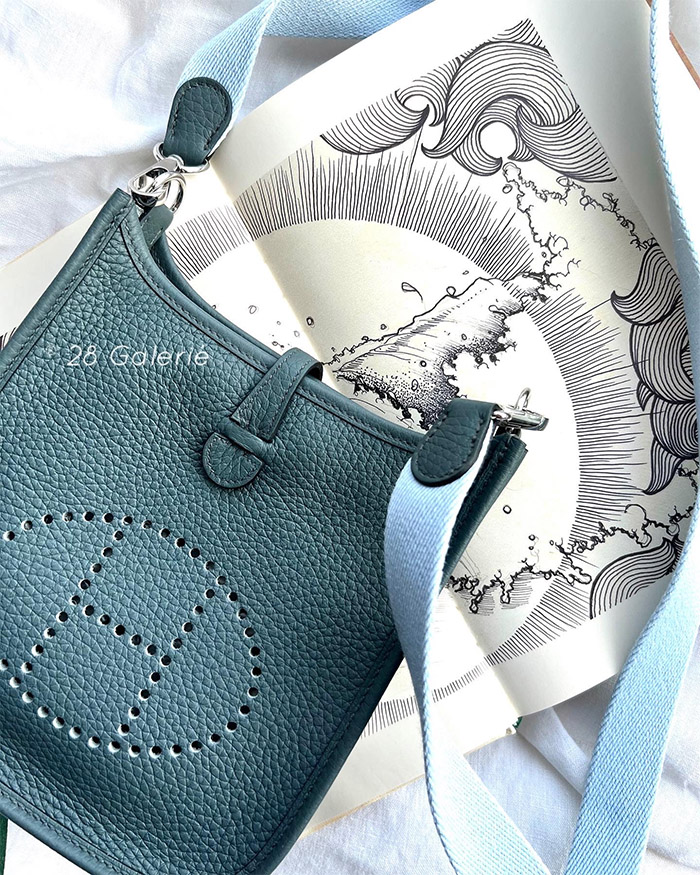 Hermes Blue Orage Evelyne TPM in Clemence Leather and Silver Hardware