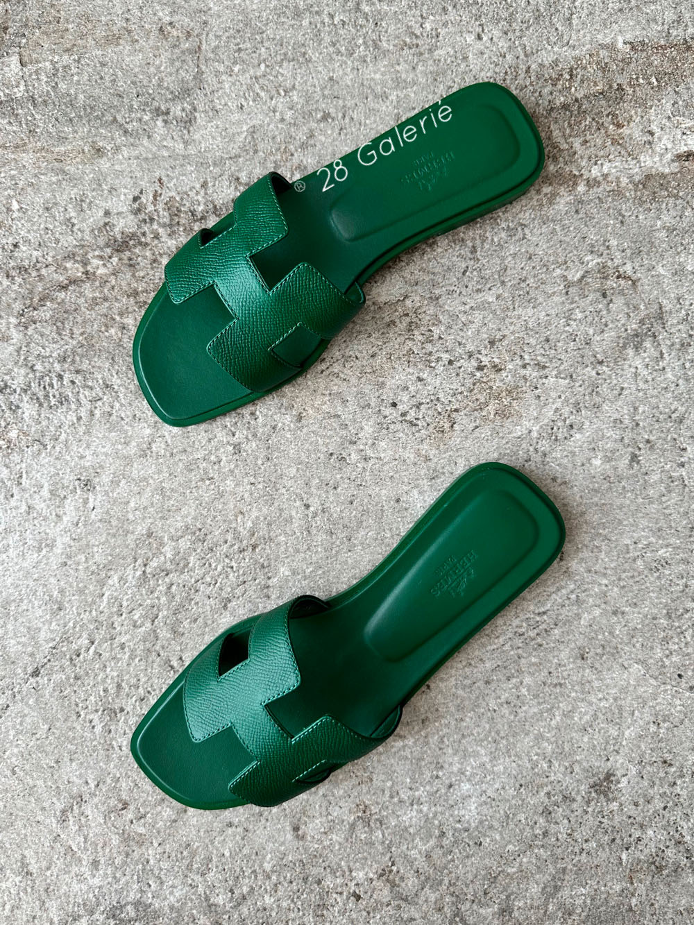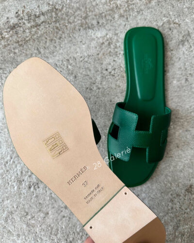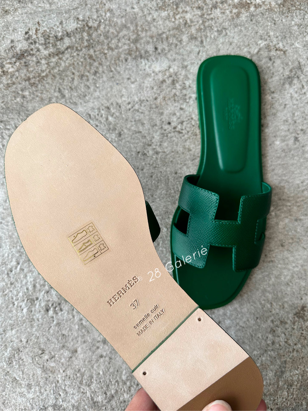 Hermes Green Oran Flat Sandals in Epsom Leather s37