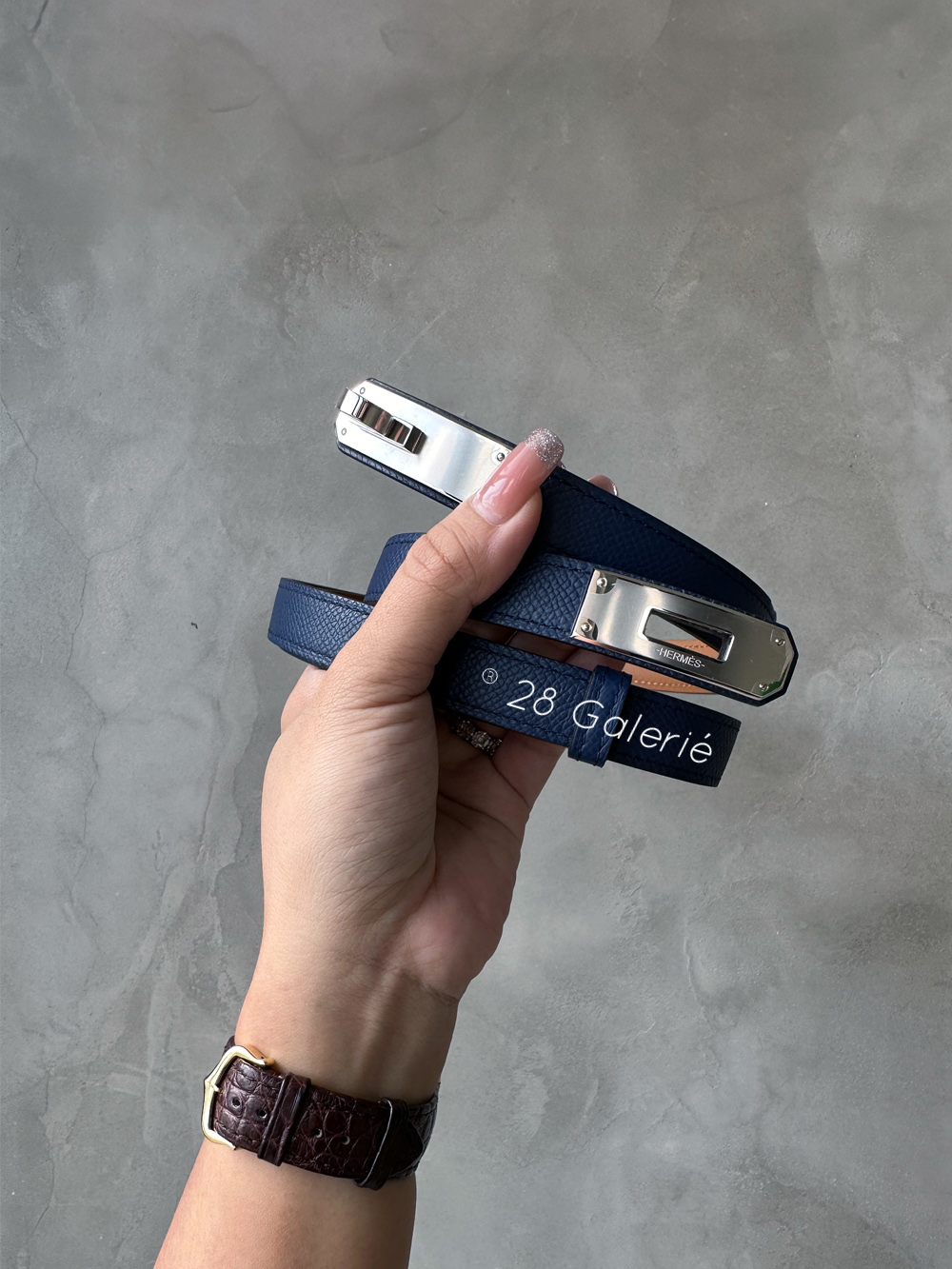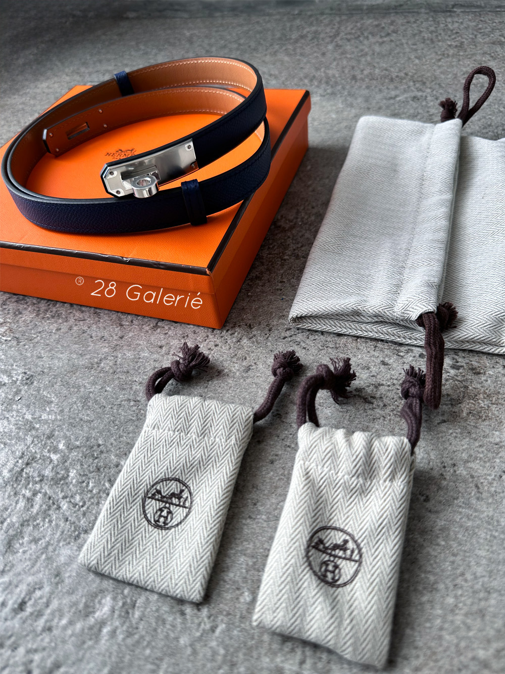 Hermes Navy Blue Kelly Buckle Belt in Epsom Leather and Palladium Hardware