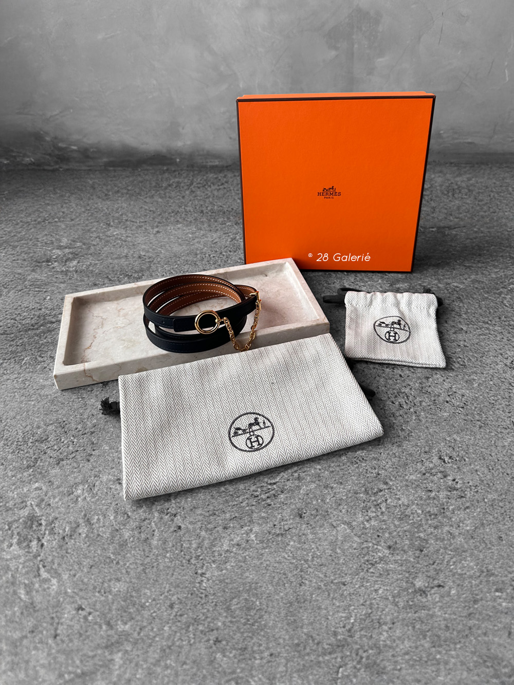 Hermes NoirGold Reversible in EpsomSwift Leather Belt & Gold Carrousel Belt Buckle