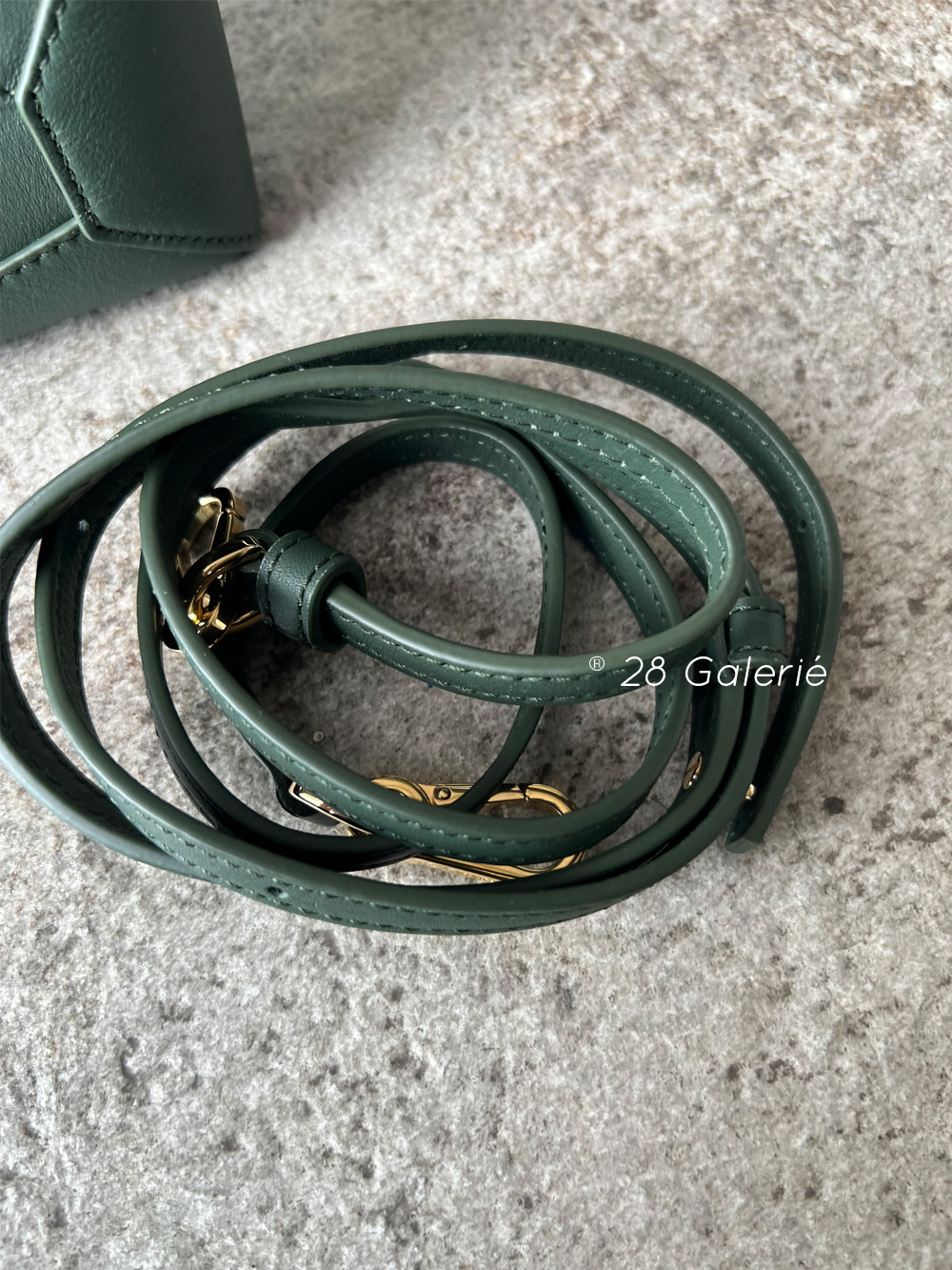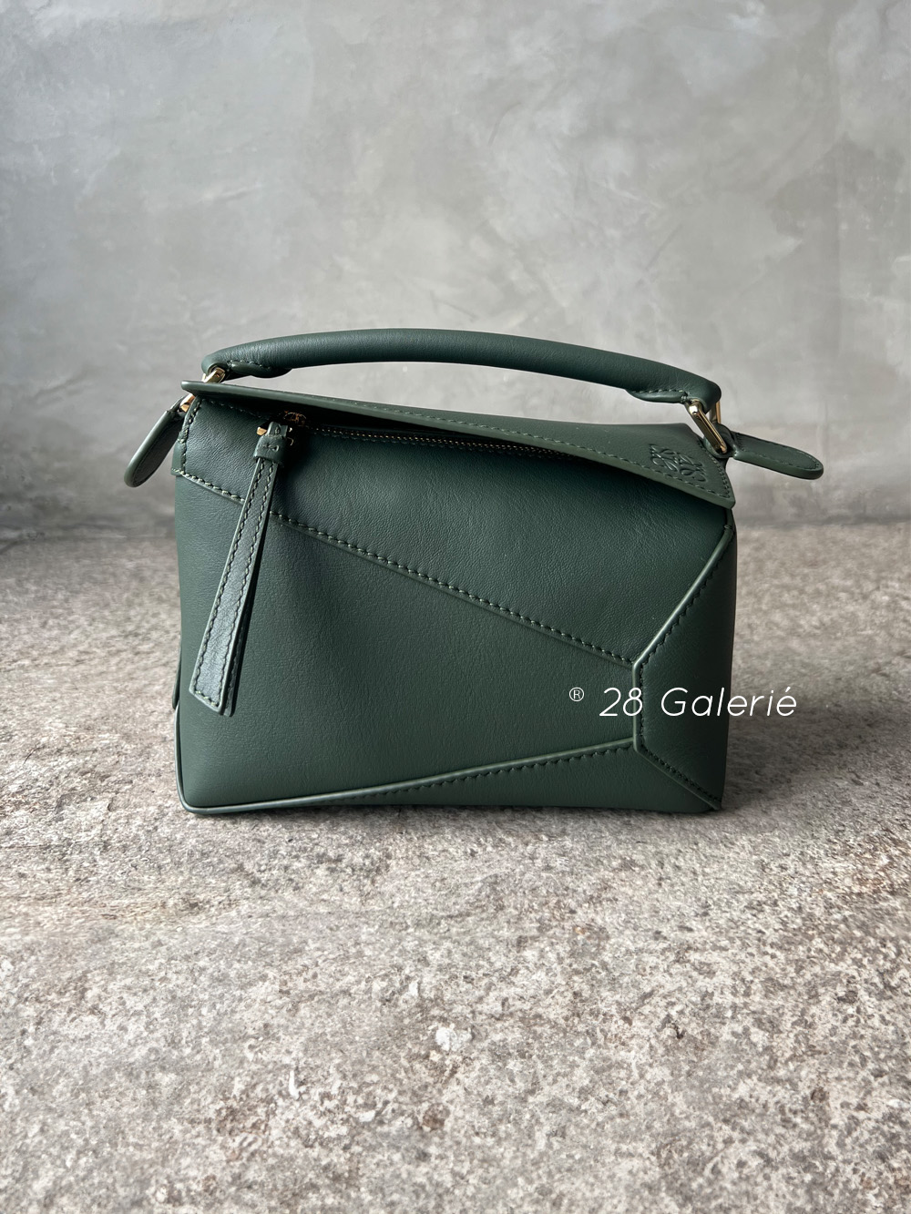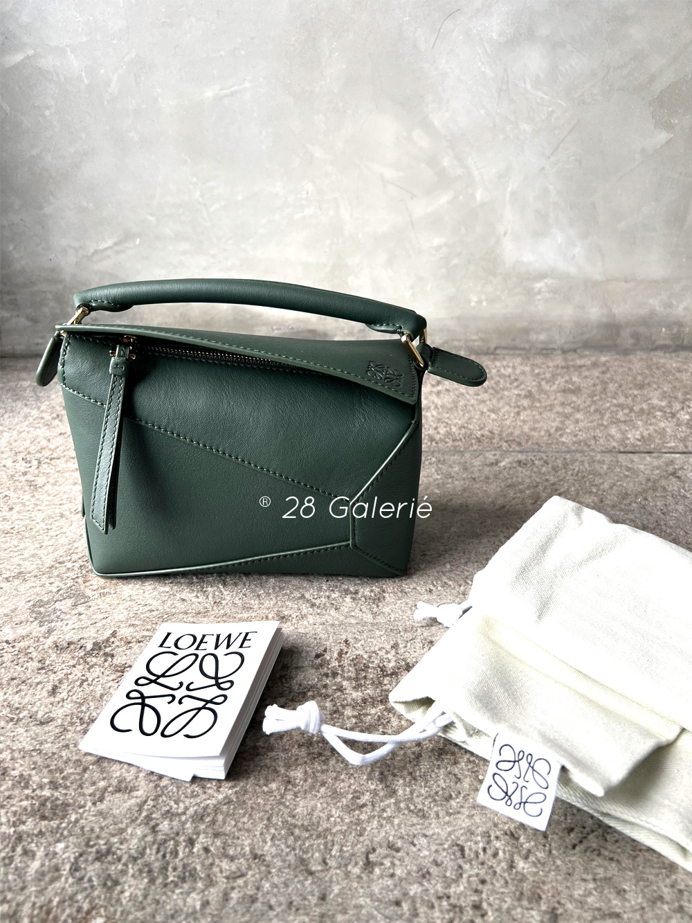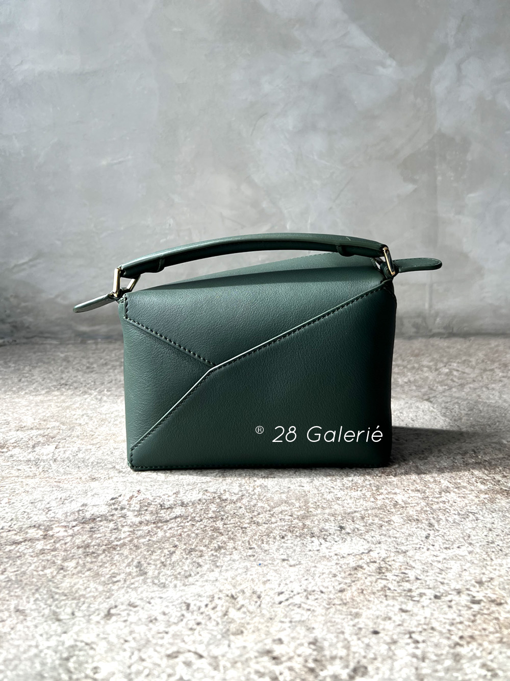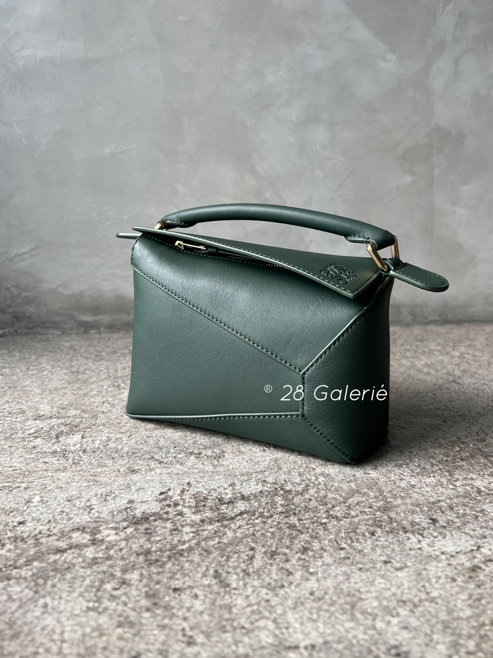 LOEWE Forest Green Mini Leather Puzzle Edge Top-Handle Bag