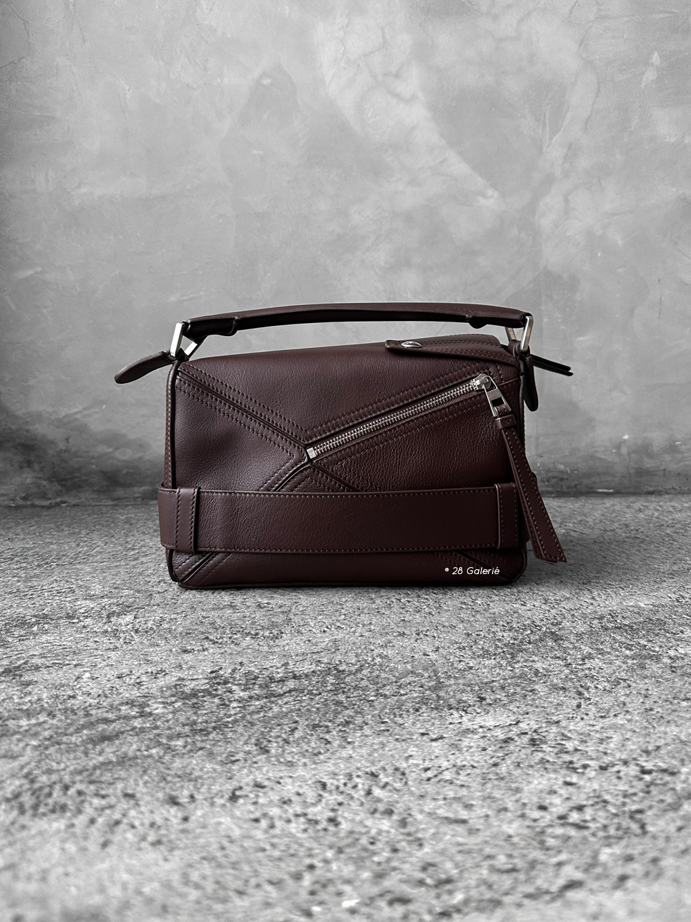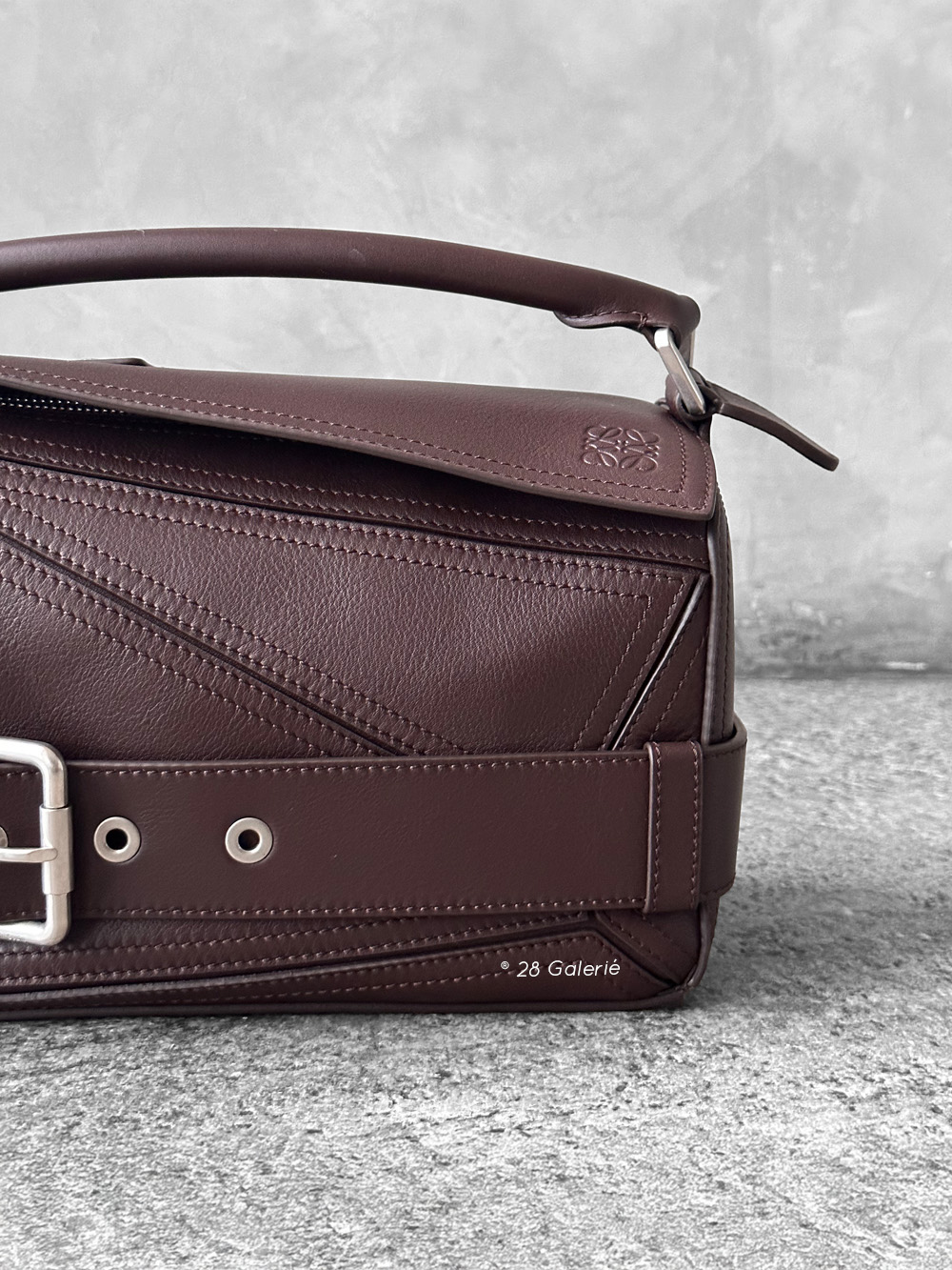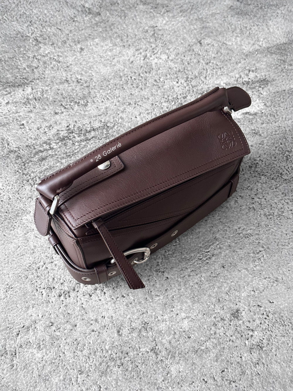 Loewe Small Dark Brown Puzzle Biker Bag in Soft Calfskin Leather and SHW