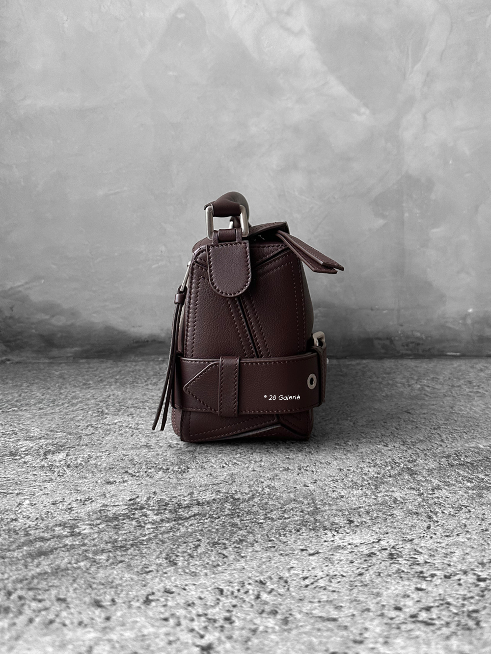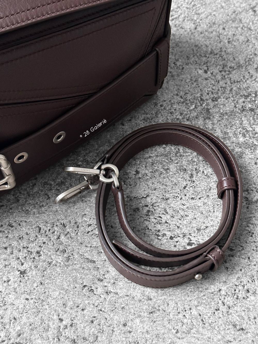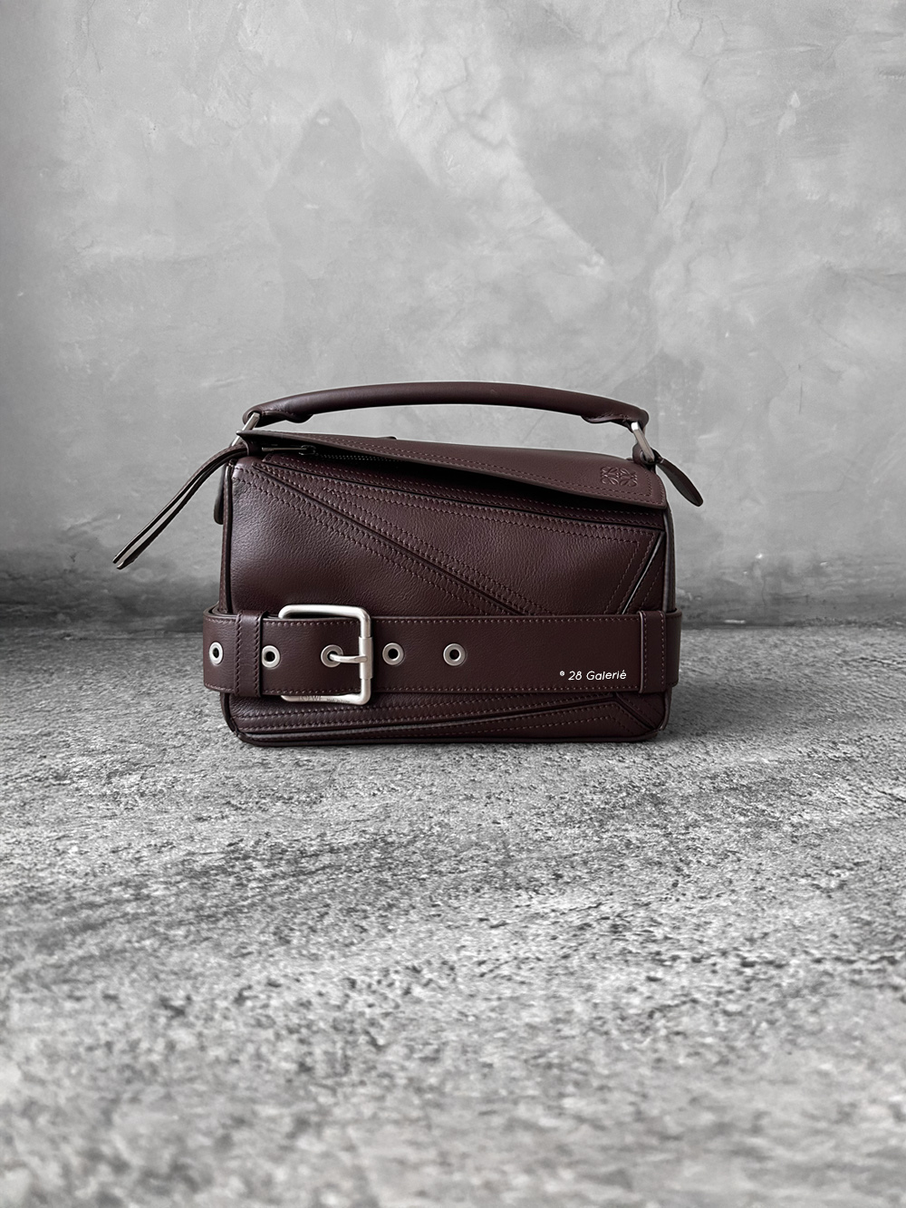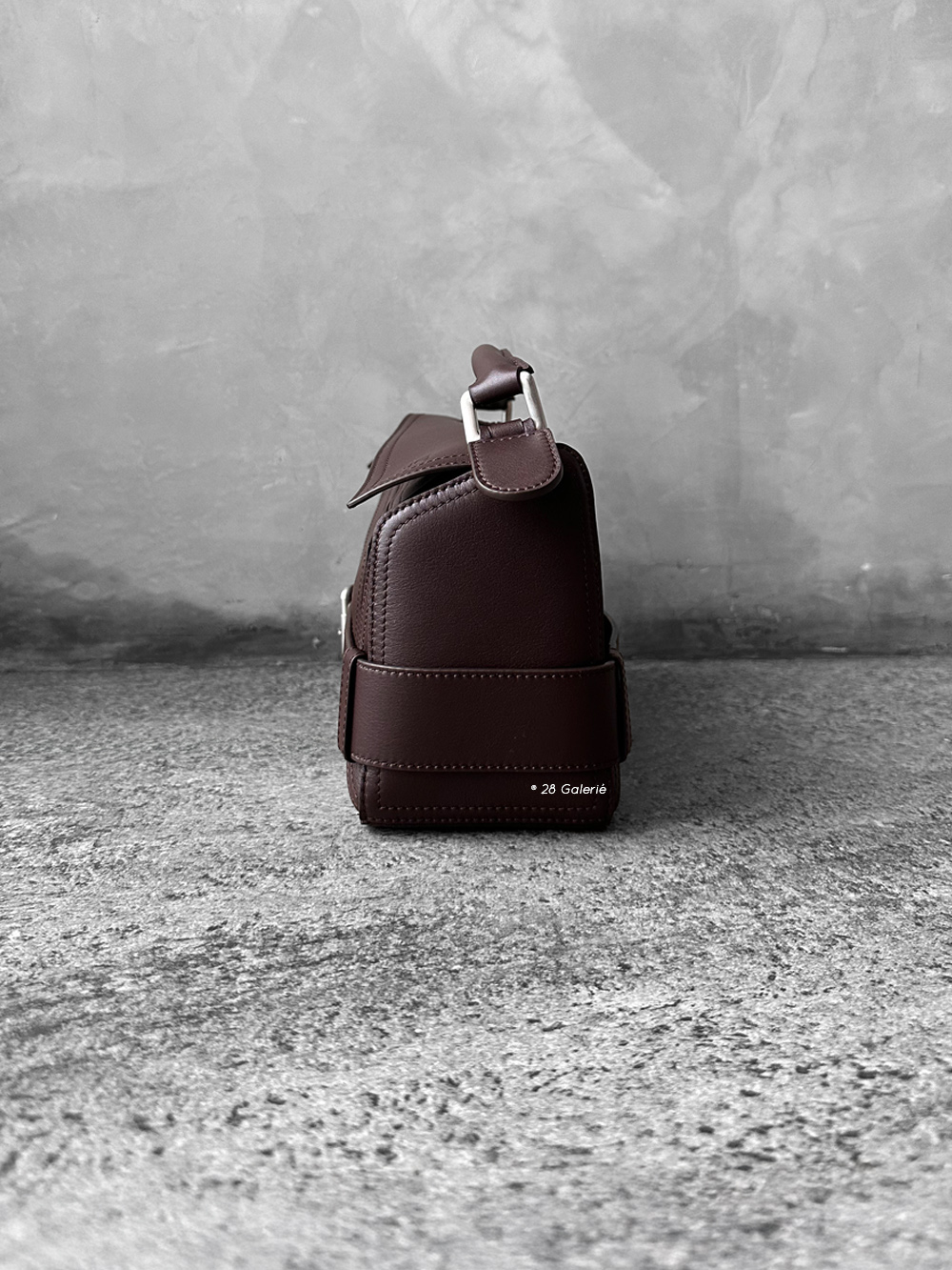 Loewe Small Dark Brown Puzzle Biker Bag in Soft Calfskin Leather and SHW