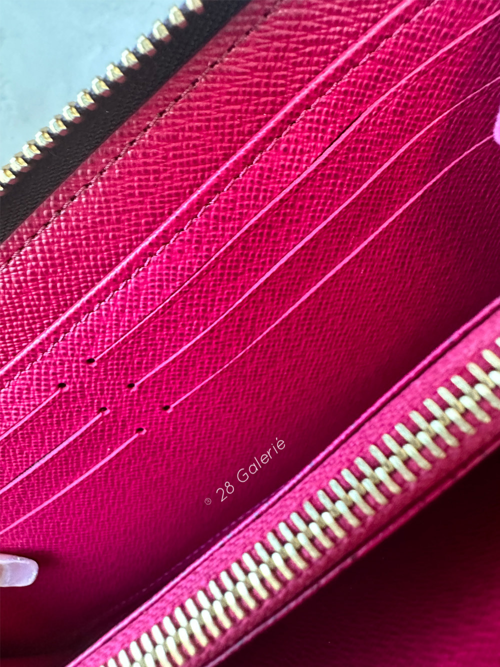 Item is in excellent condition with slight wear and signs of previous use such as minor scratches on the hardware, on the leather, or faint rubs on the corners. But overall, it is in excellent condition with no damage whatsoever.