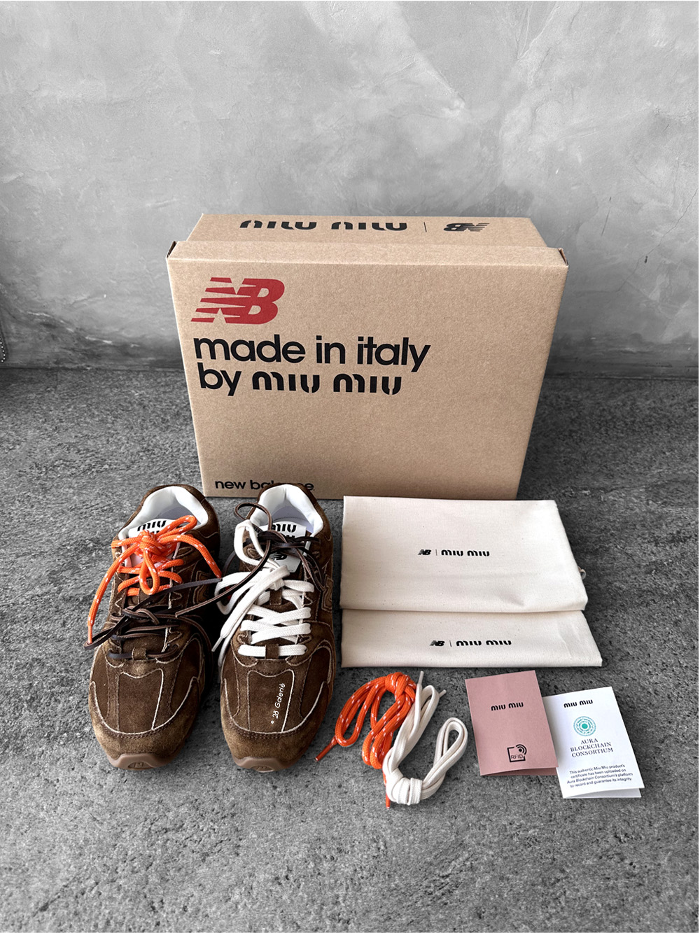 Box, Dustbag, two laces, and Care card