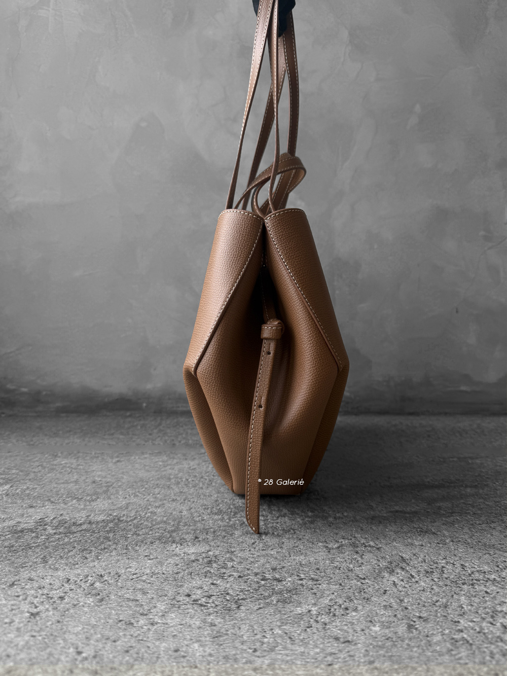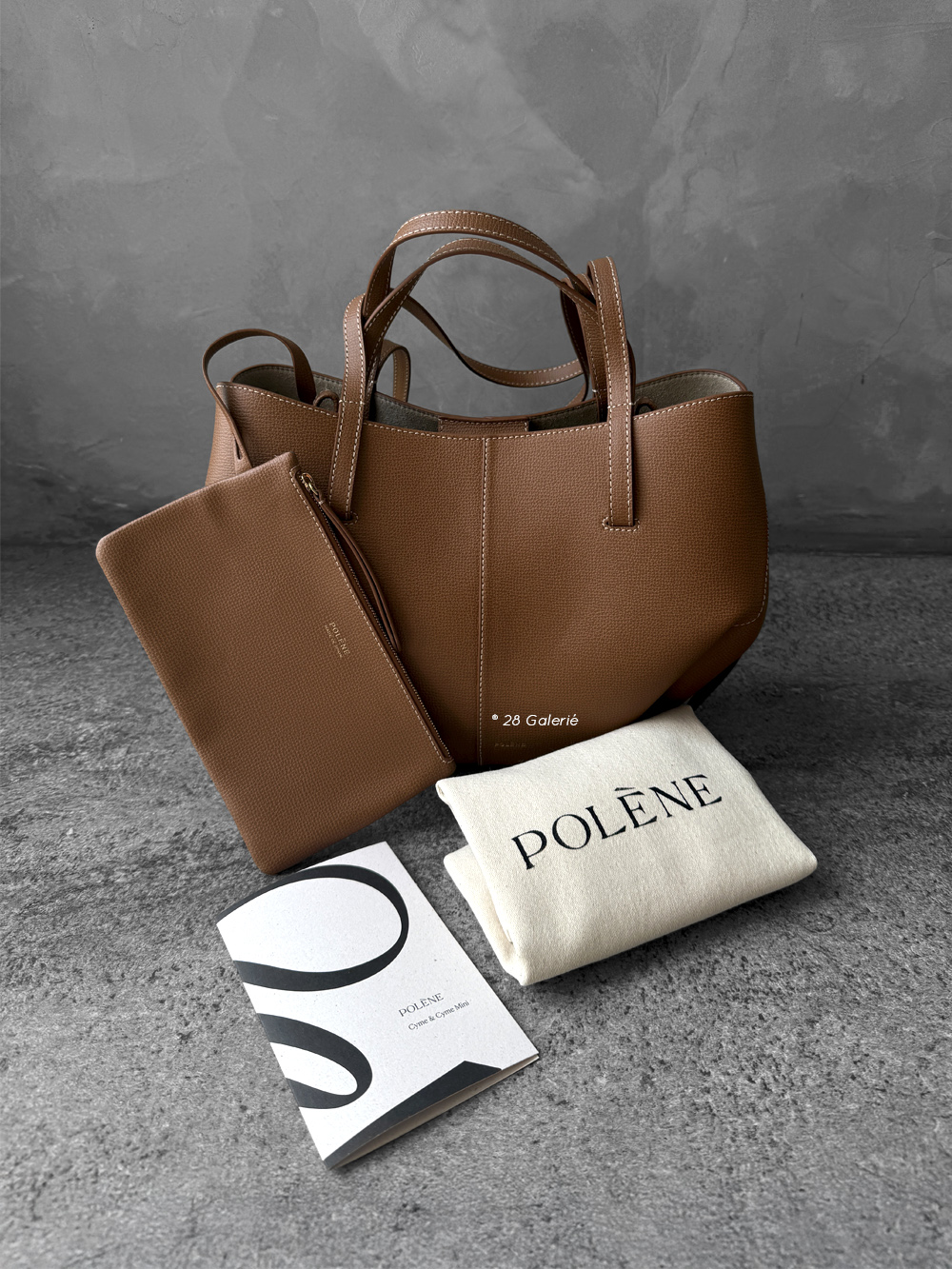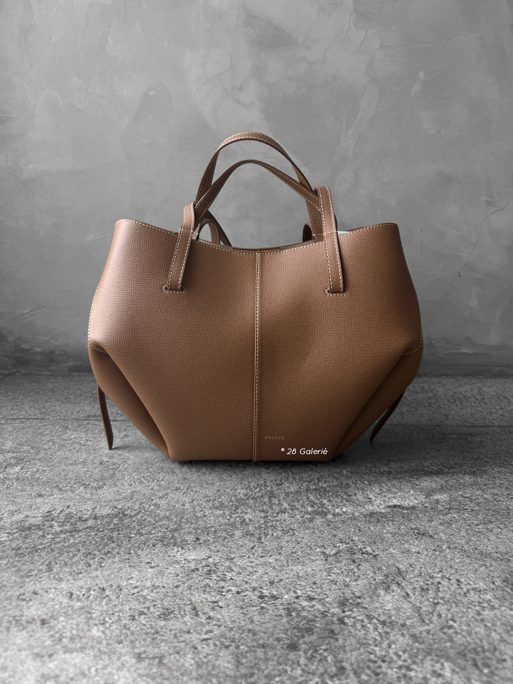 Polene Camel Mini Cyme in Texture Calfskin Leather with Suede Lining