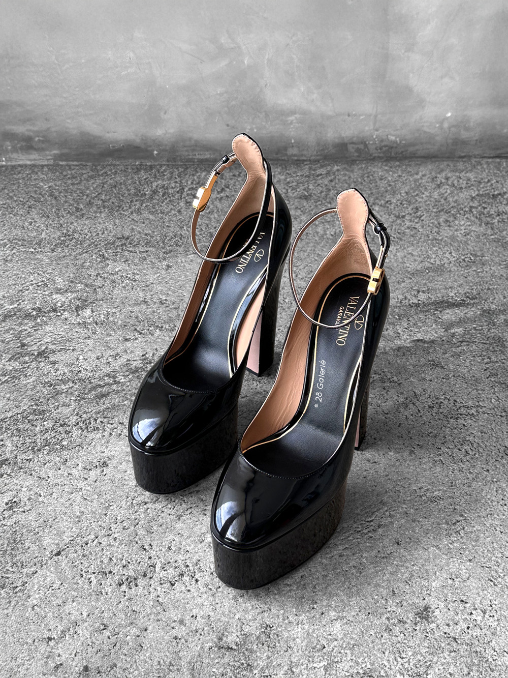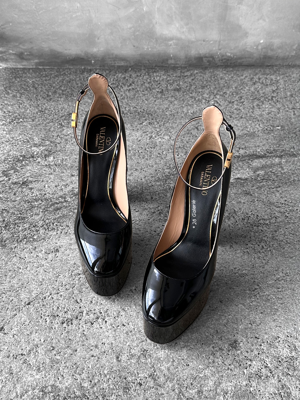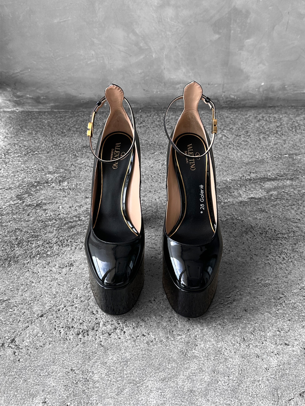 Valentino Garavani 40EU Black Patent Tan Leather Go Platform Pumps