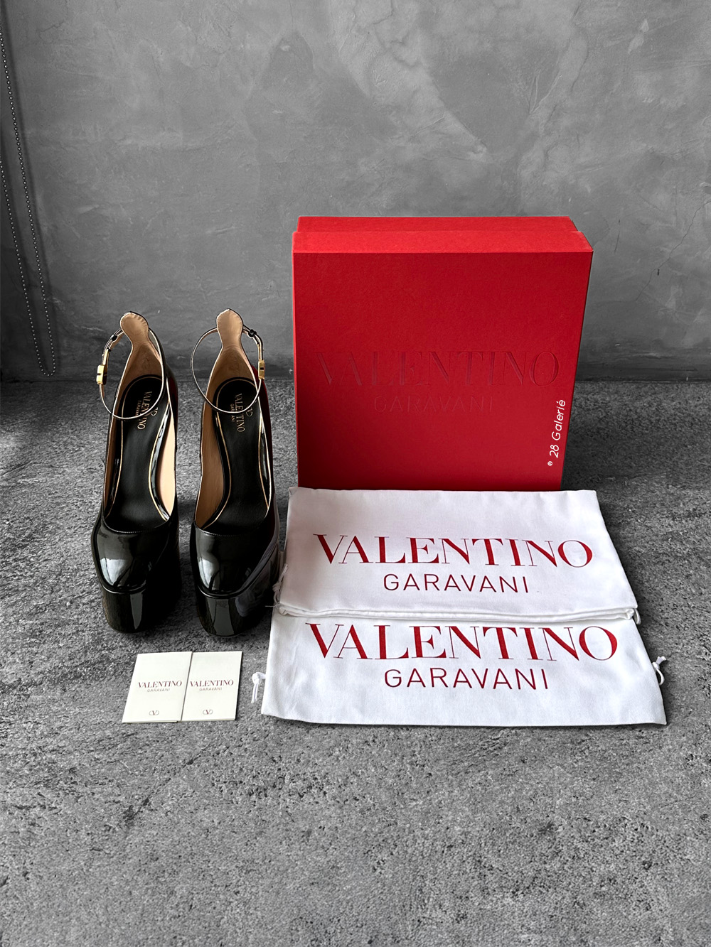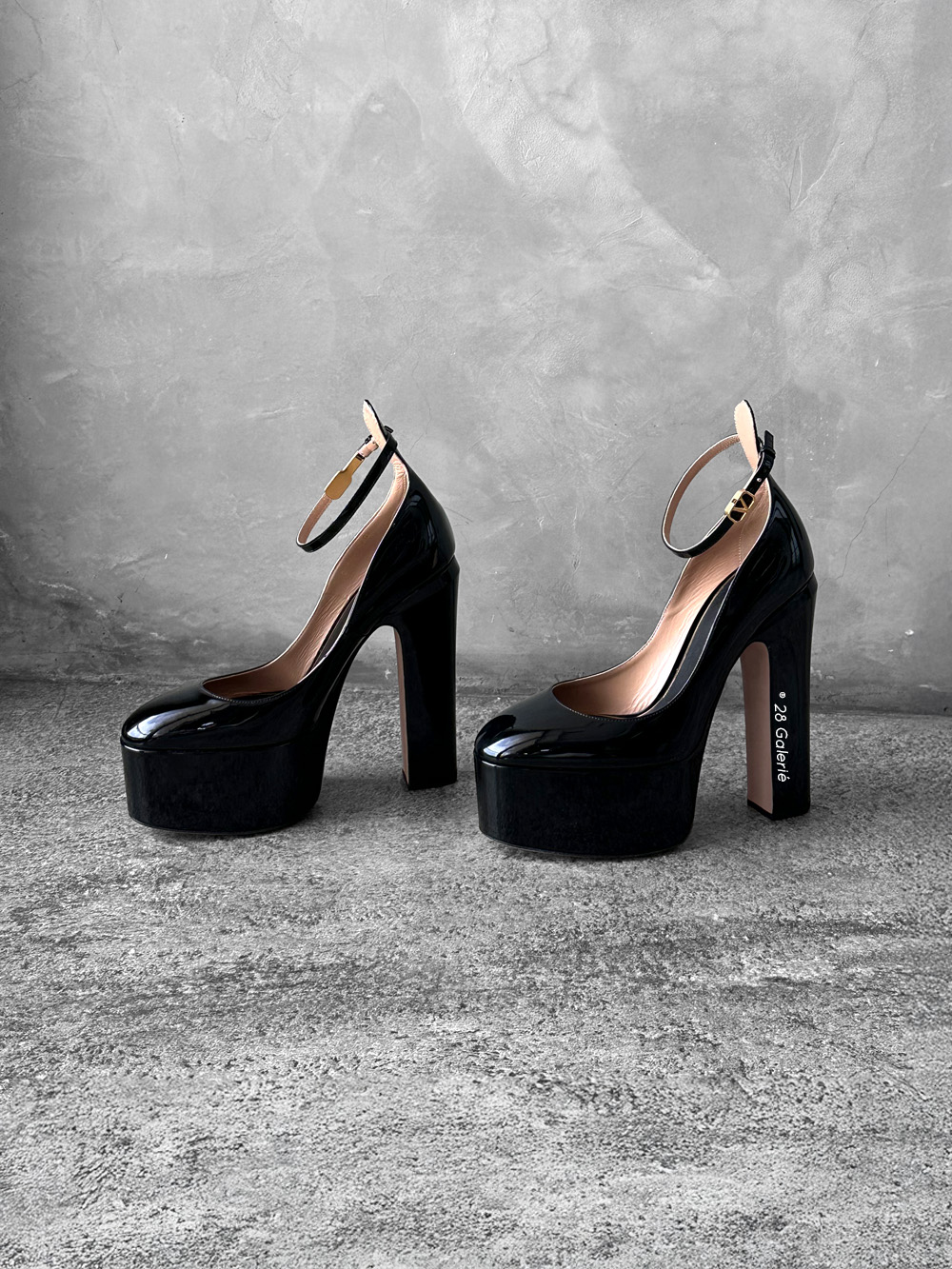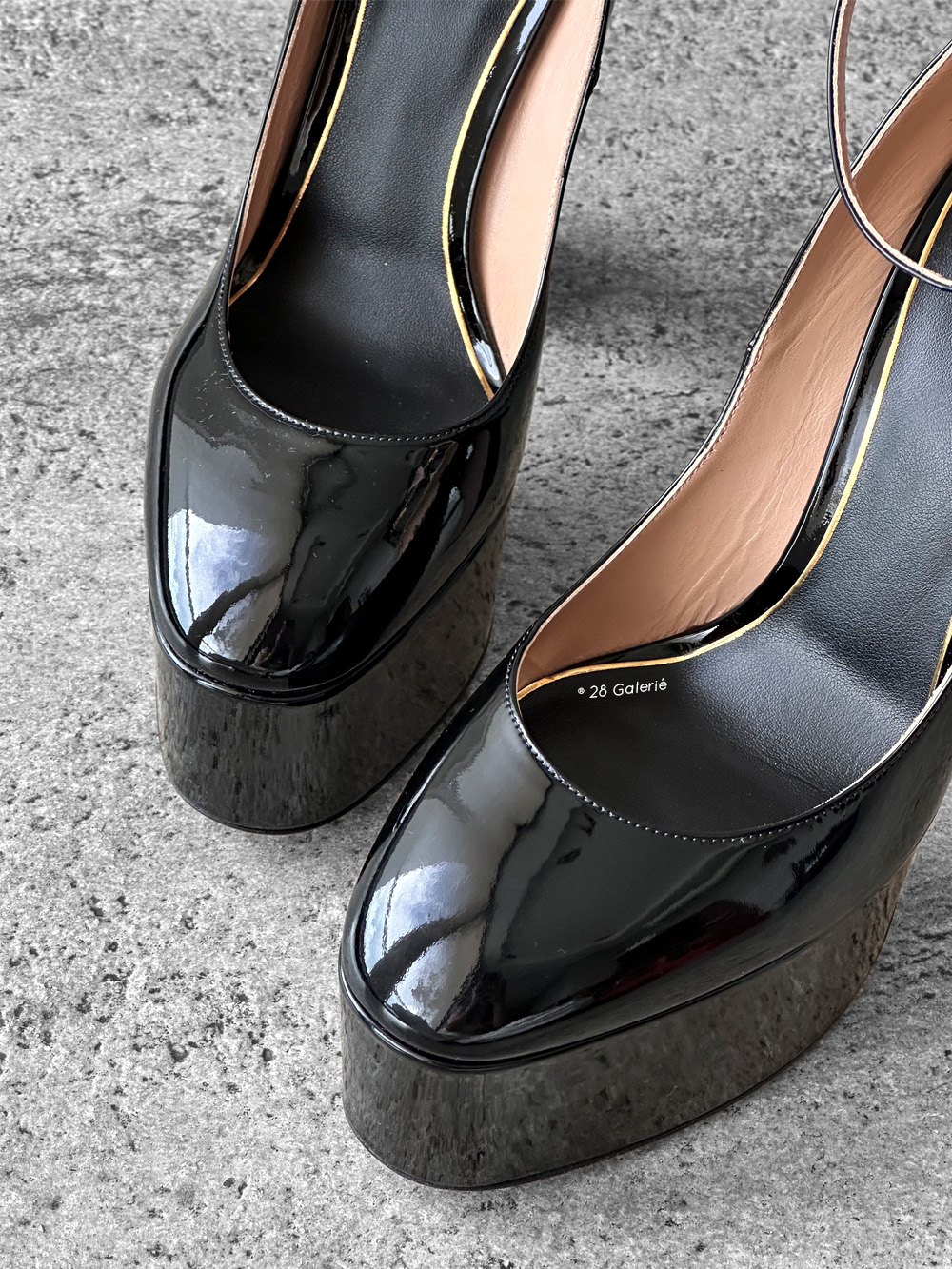 Valentino Garavani 40EU Black Patent Tan Leather Go Platform Pumps