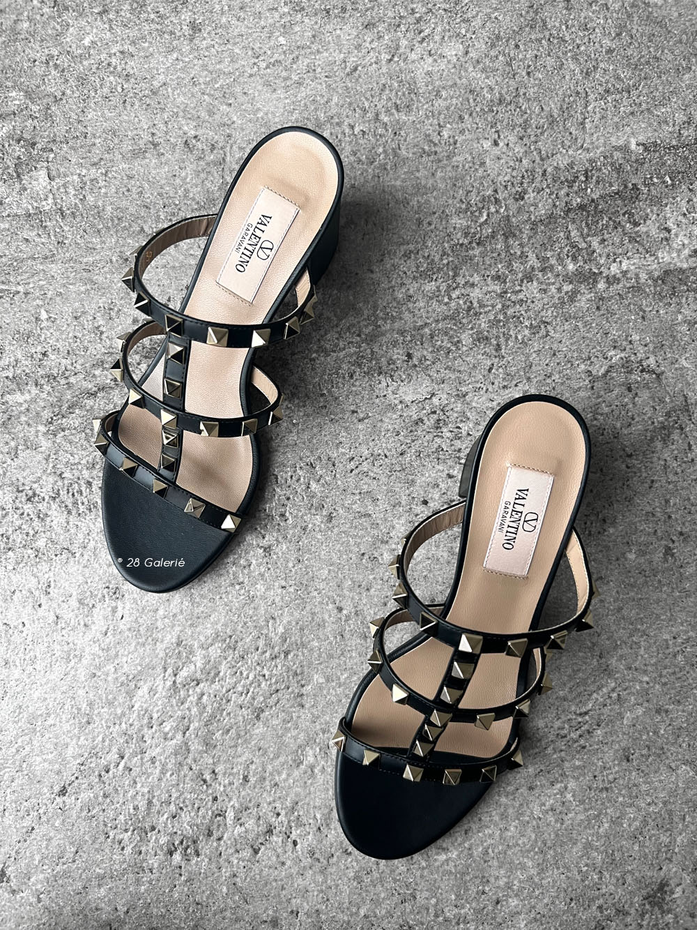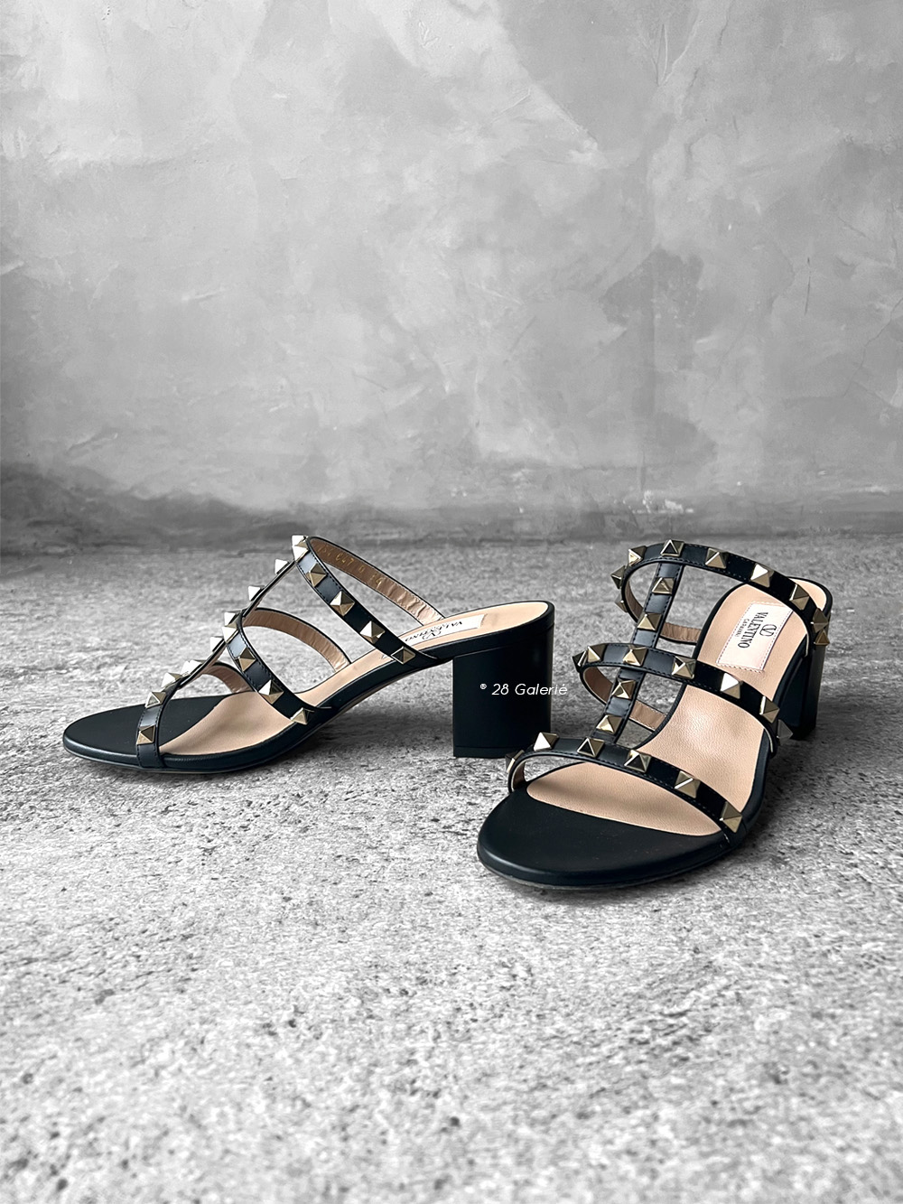 Valentino Garavani Black Rockstud Sandals in Mule Leather EU 36